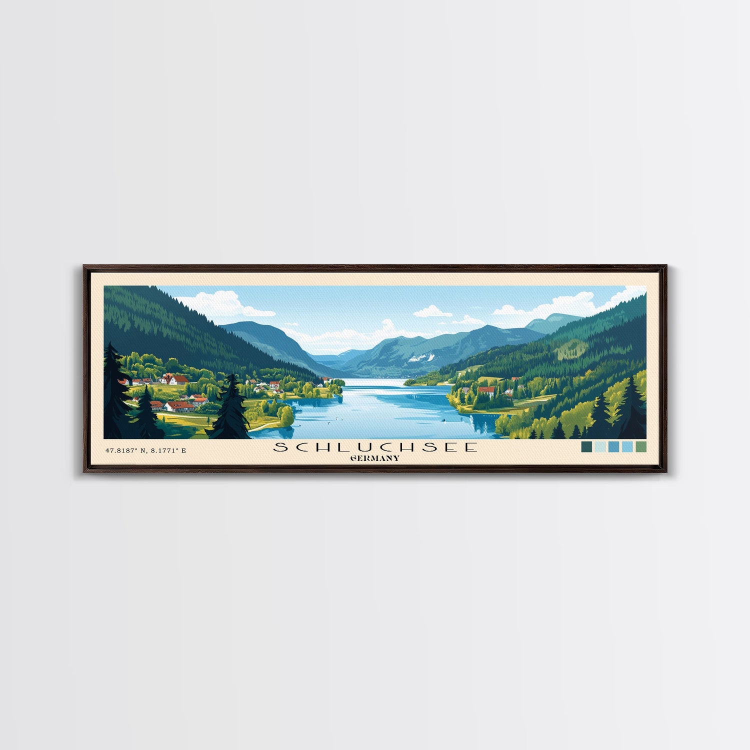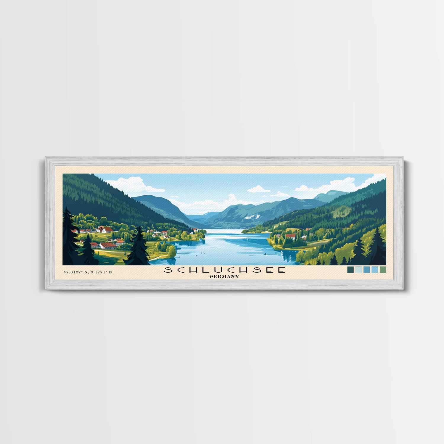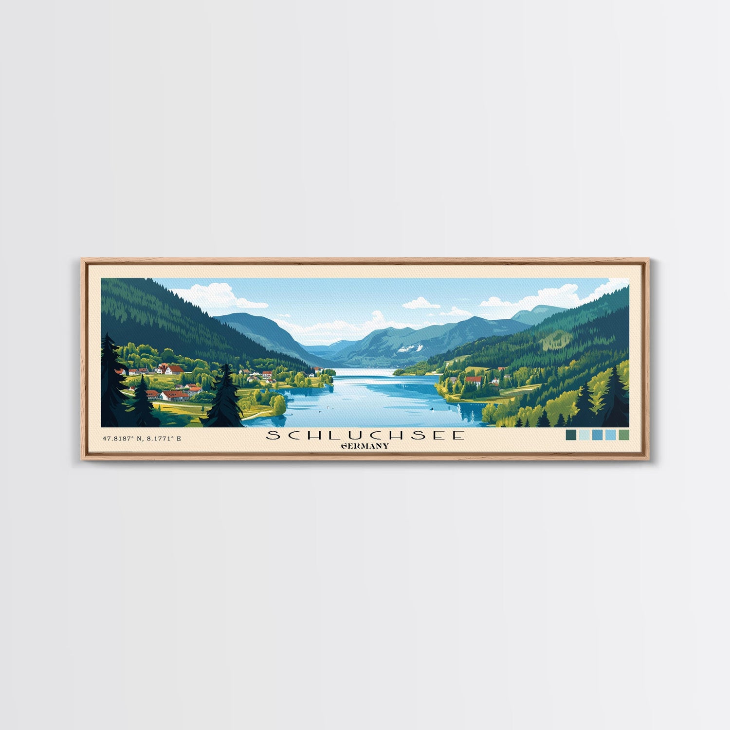 Schluchsee, Germany Panoramic Beach Print, Vacation Gift, Germany Wall Art, Framed Canvas Print, Framed Beach Painting