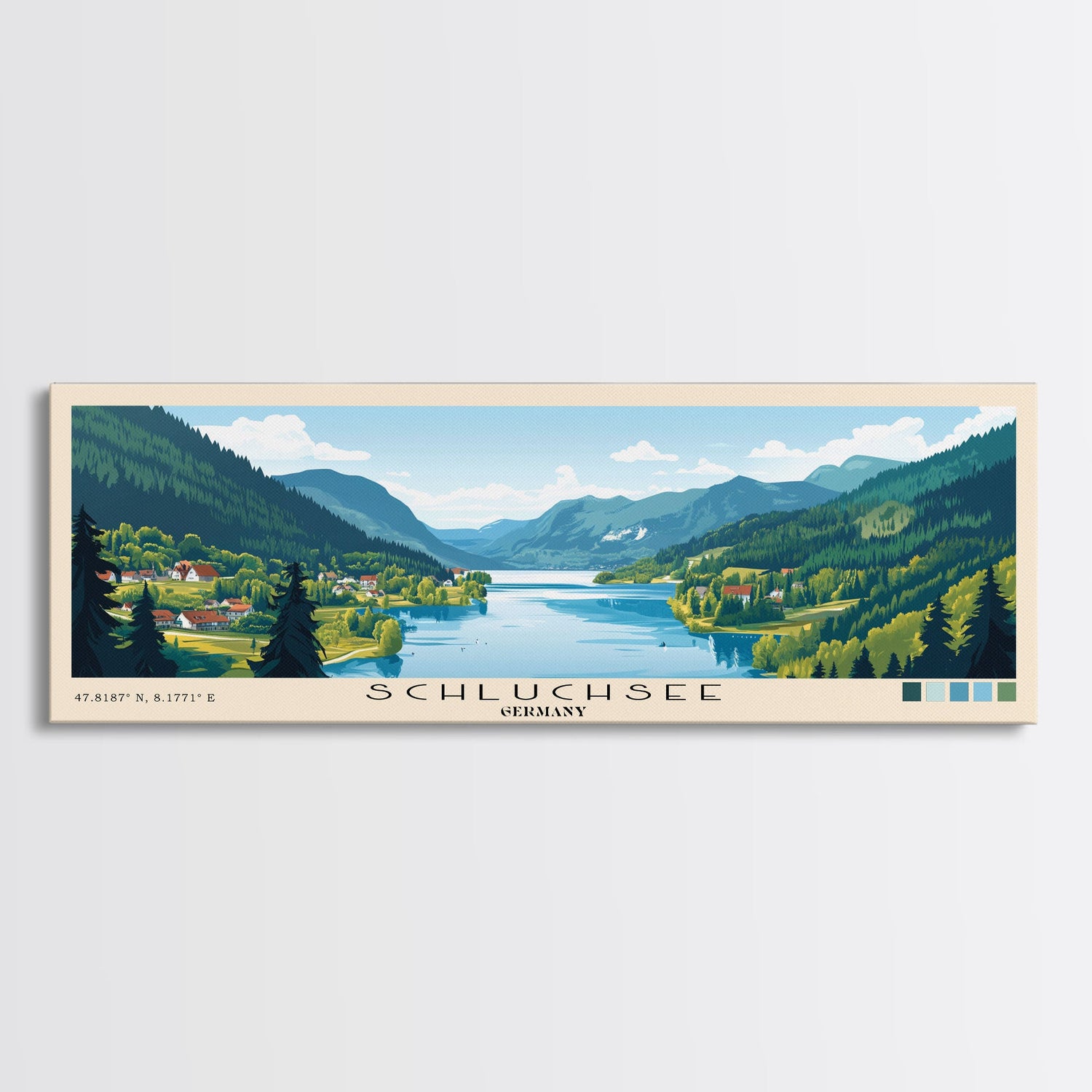 Schluchsee, Germany Panoramic Beach Print, Vacation Gift, Germany Wall Art, Framed Canvas Print, Framed Beach Painting - 10x30 Inches / No Frame - Stretched Canvas Only is backordered and will ship as soon as it is back in stock.