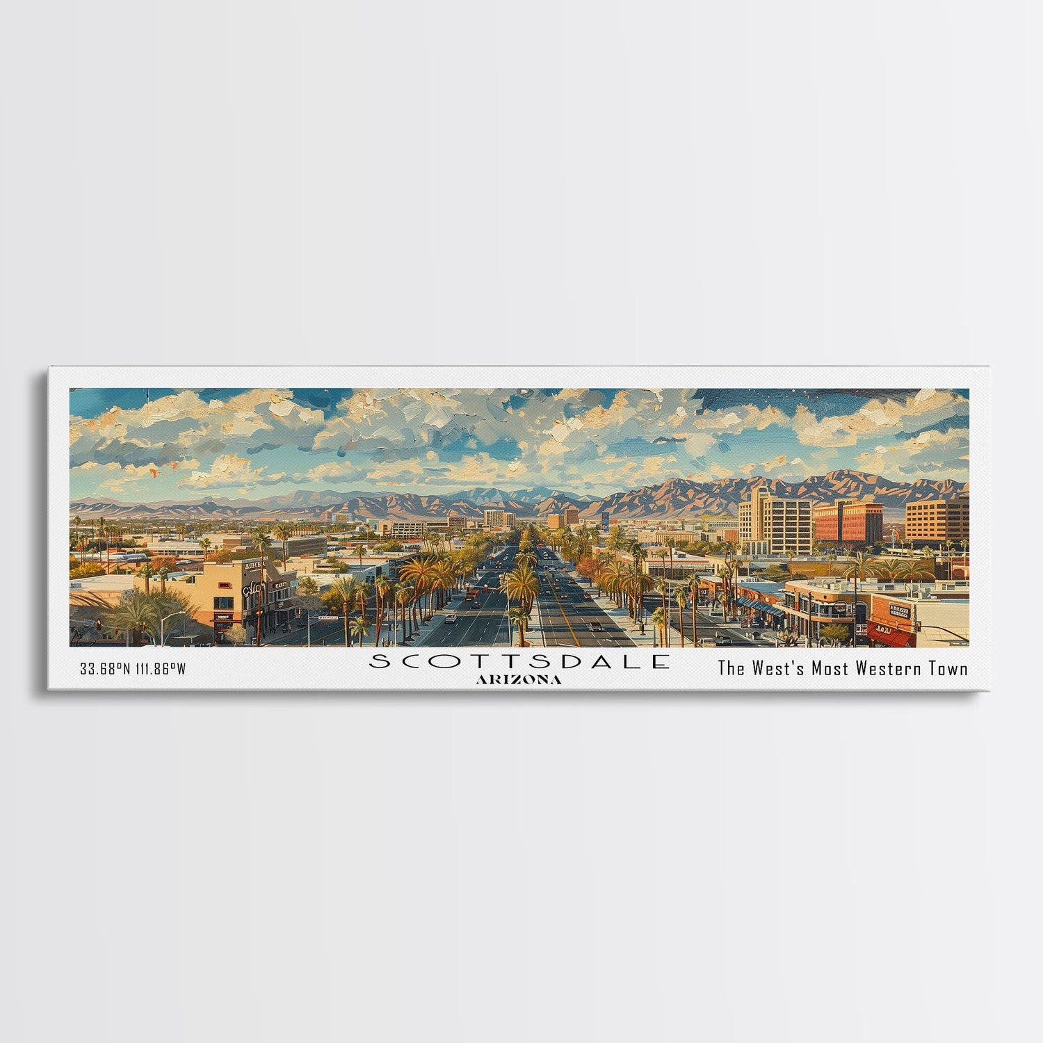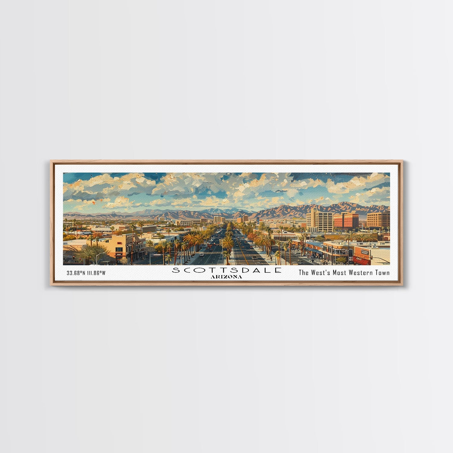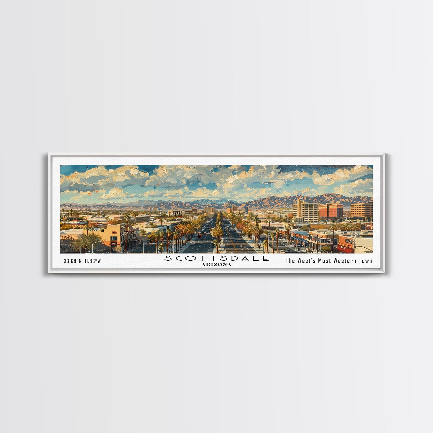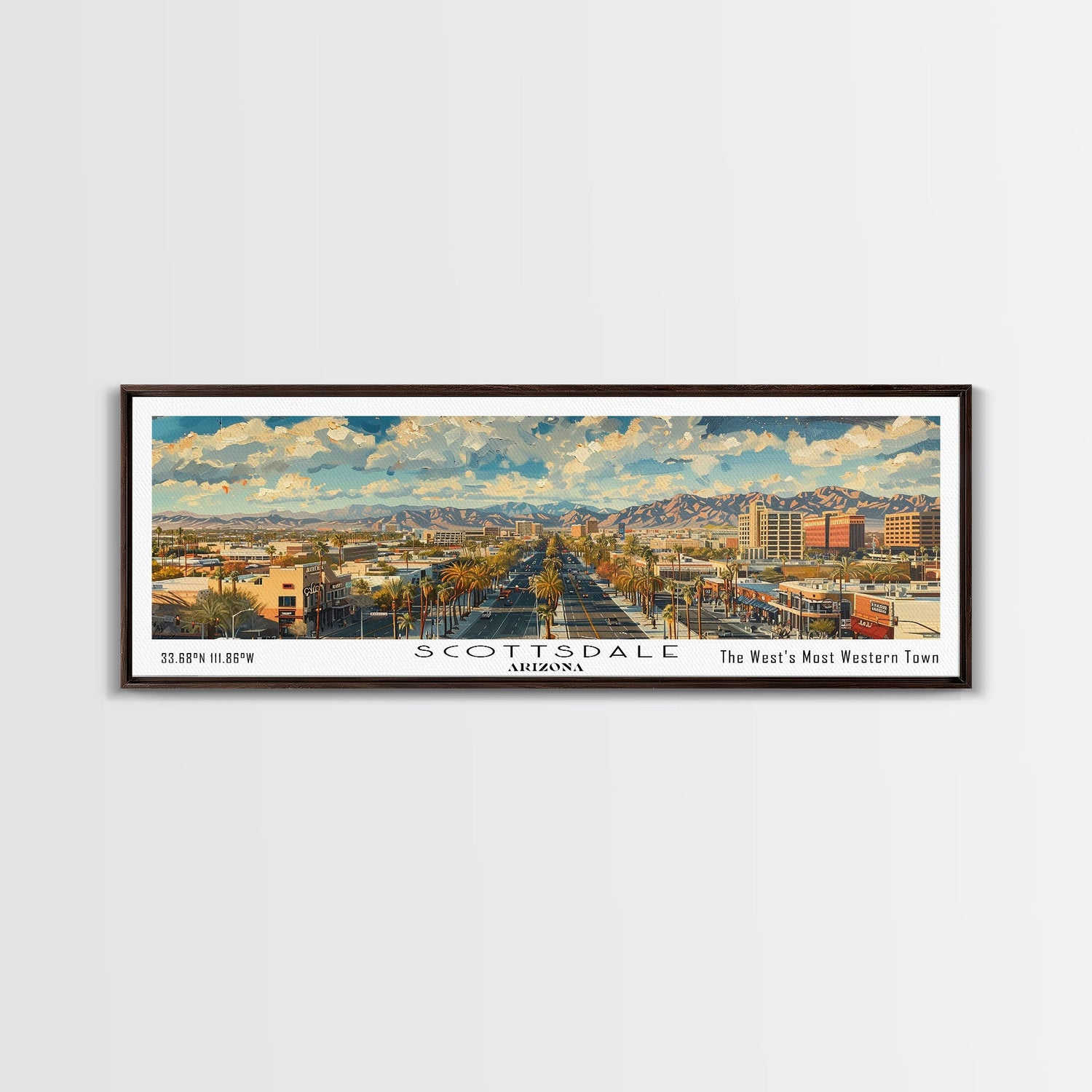 Scottdale Arizona Travel Poster, Framed Canvas Print, Wall Art, Home Decor, Travel Print, Office Decor, Living Room Art, Gift Idea - 10x30 Inches / No Frame - Stretched Canvas Only is backordered and will ship as soon as it is back in stock.