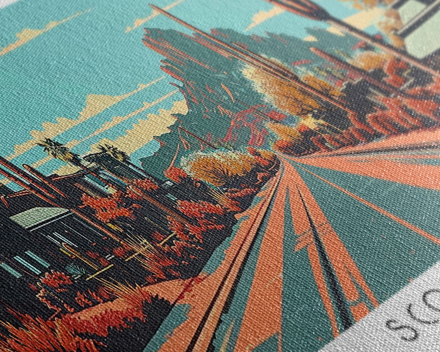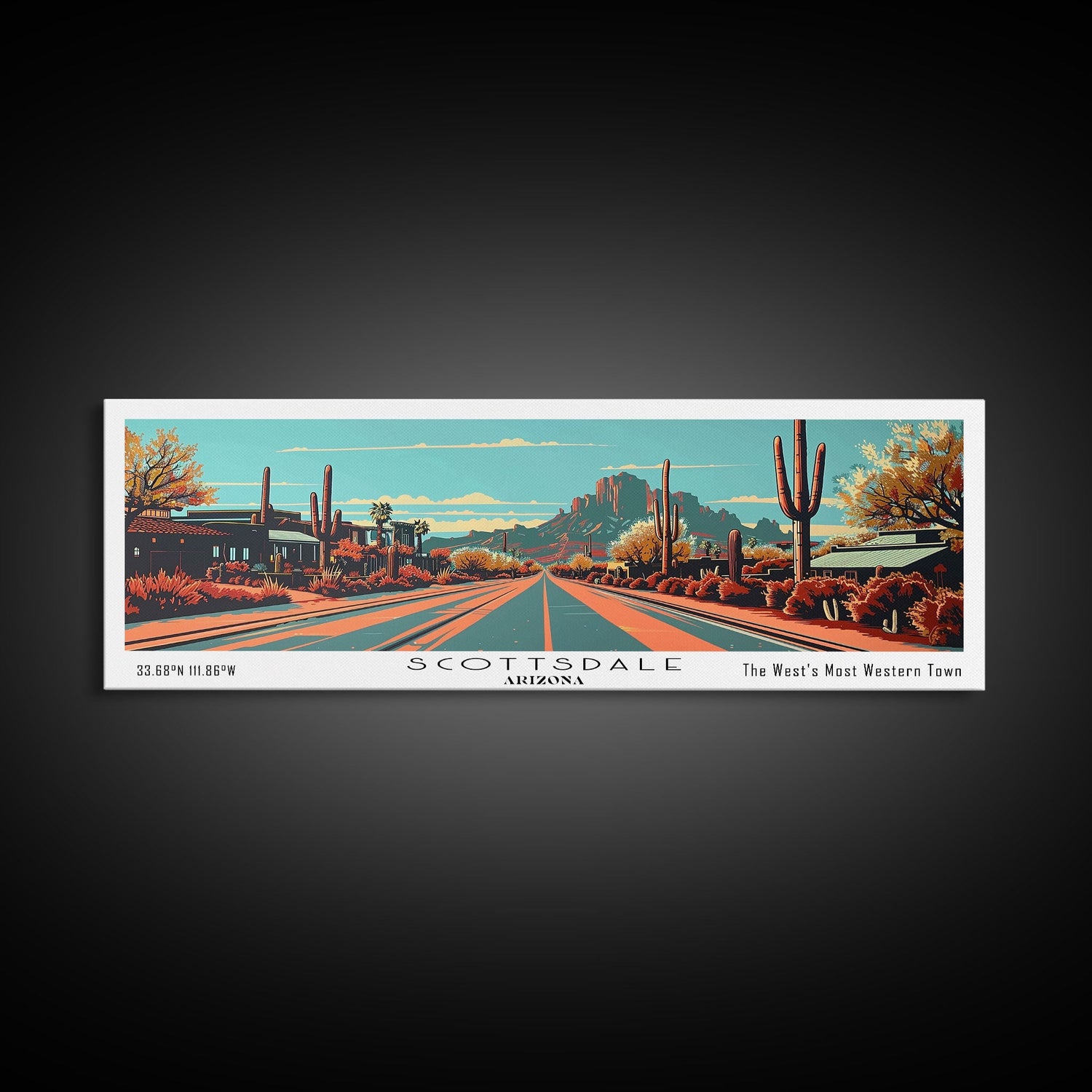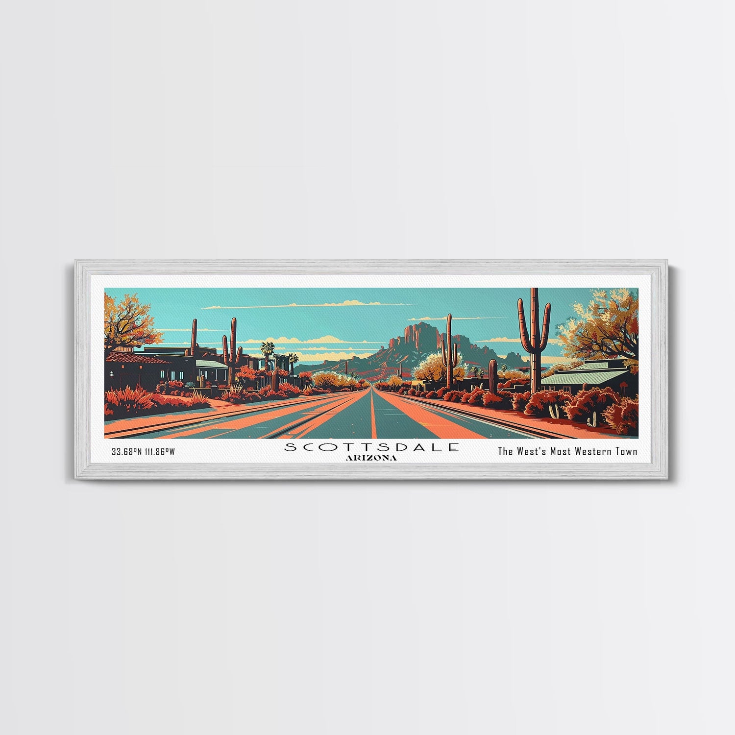 Scottsdale Arizona Panoramic Wall Art, Mid Century Modern Framed Canvas Print, Retro Pop Art Cityscape, Travel Poster, Living Room Decor