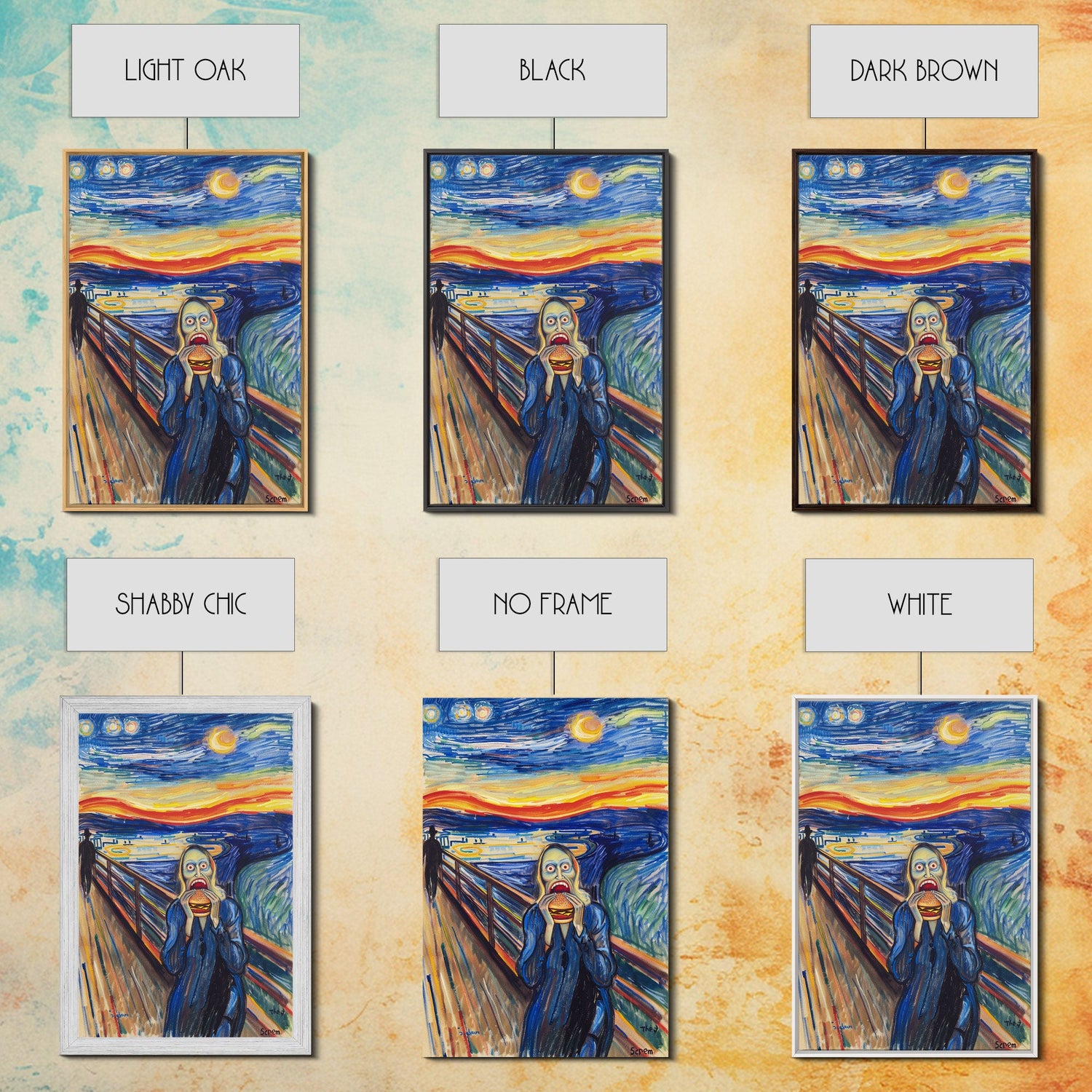 Scream-Inspired Halloween Art with a Figure Eating a Hamburger, Combining Horror and Humor for a Unique and Spooky Wall Art Piece - 8x12 Inches / No Frame - Stretched Canvas Only is backordered and will ship as soon as it is back in stock.
