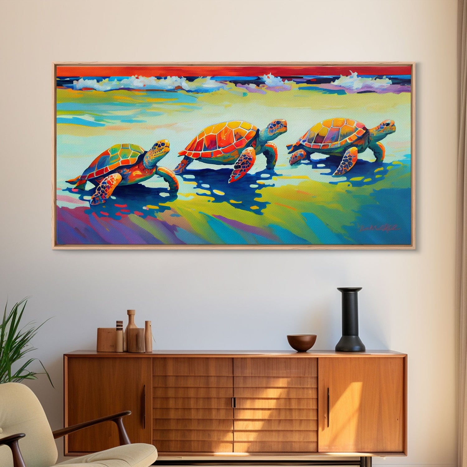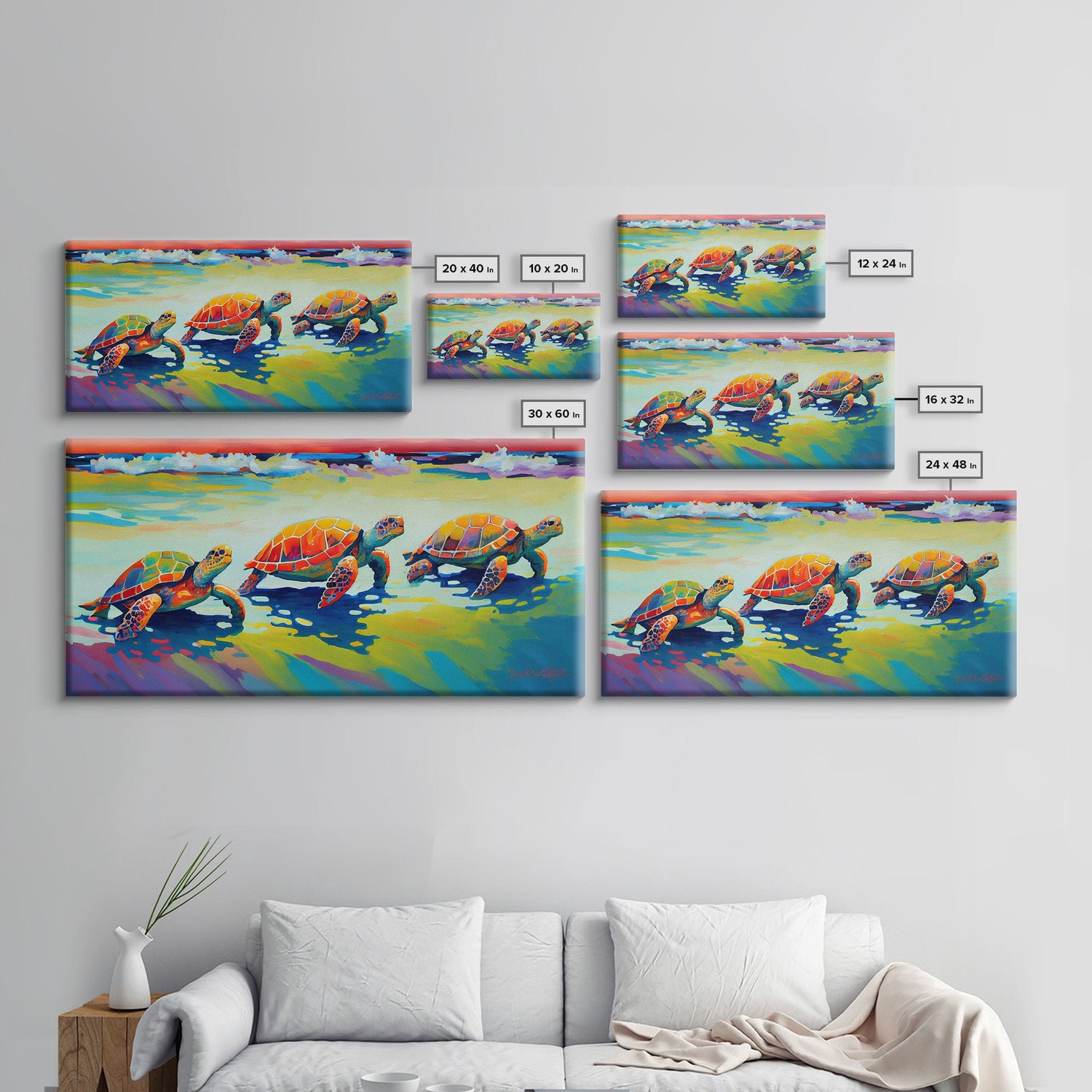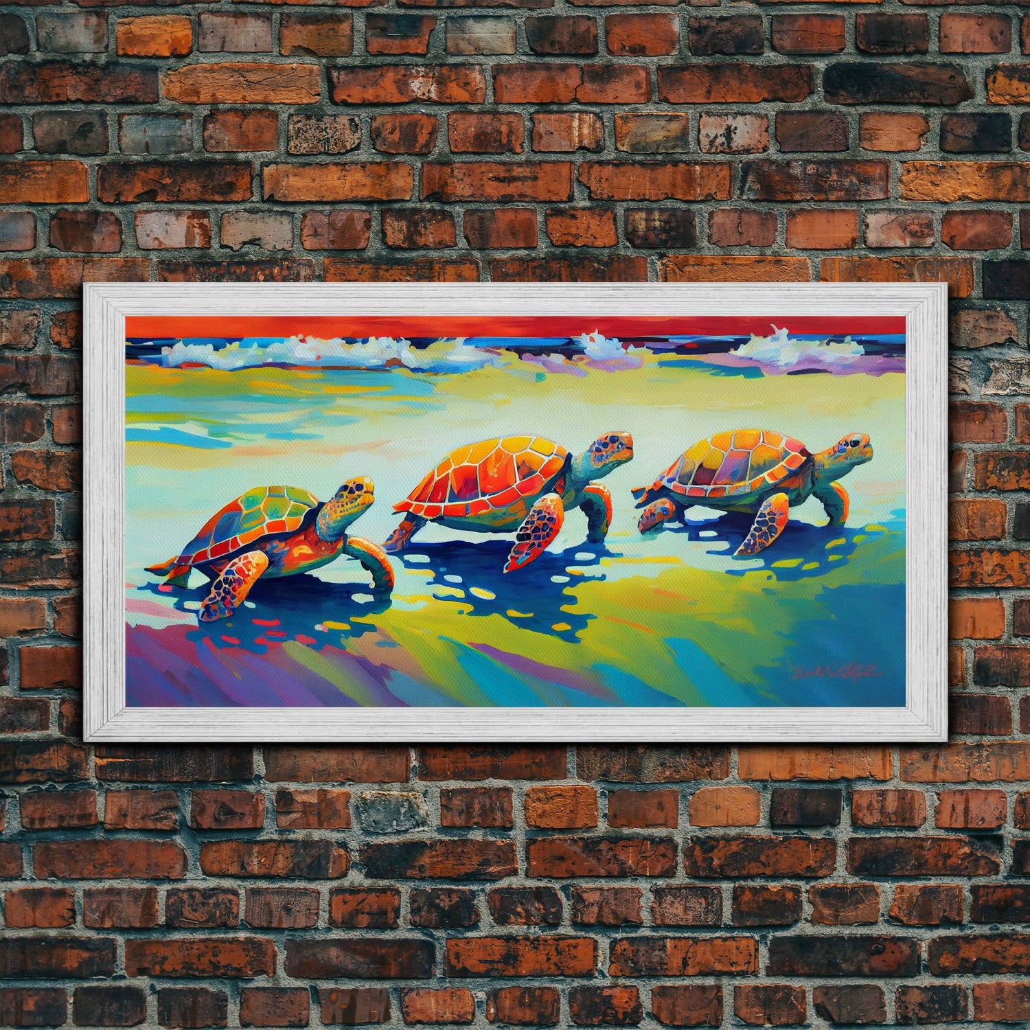 Sea Turtle Framed Canvas Print Painting, Watercolor Painting, Sea Turtle Print, Sea Turtle Wall Art, Beach Decor, Print, Green Sea Turtle