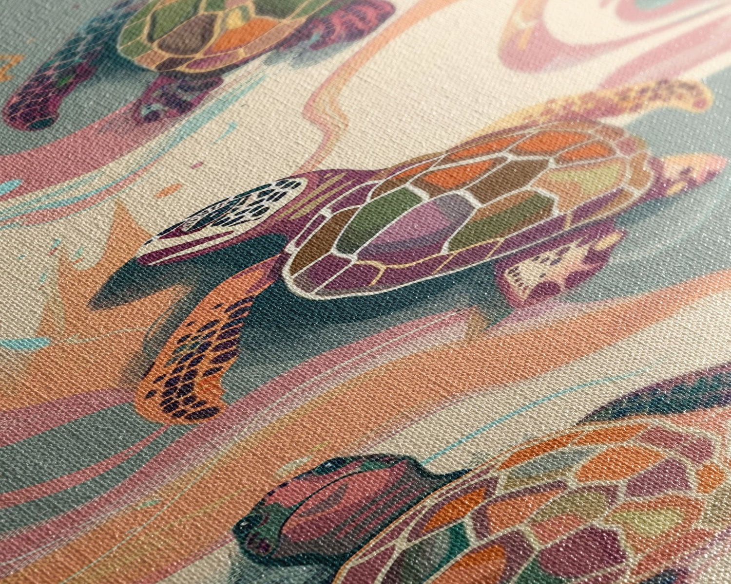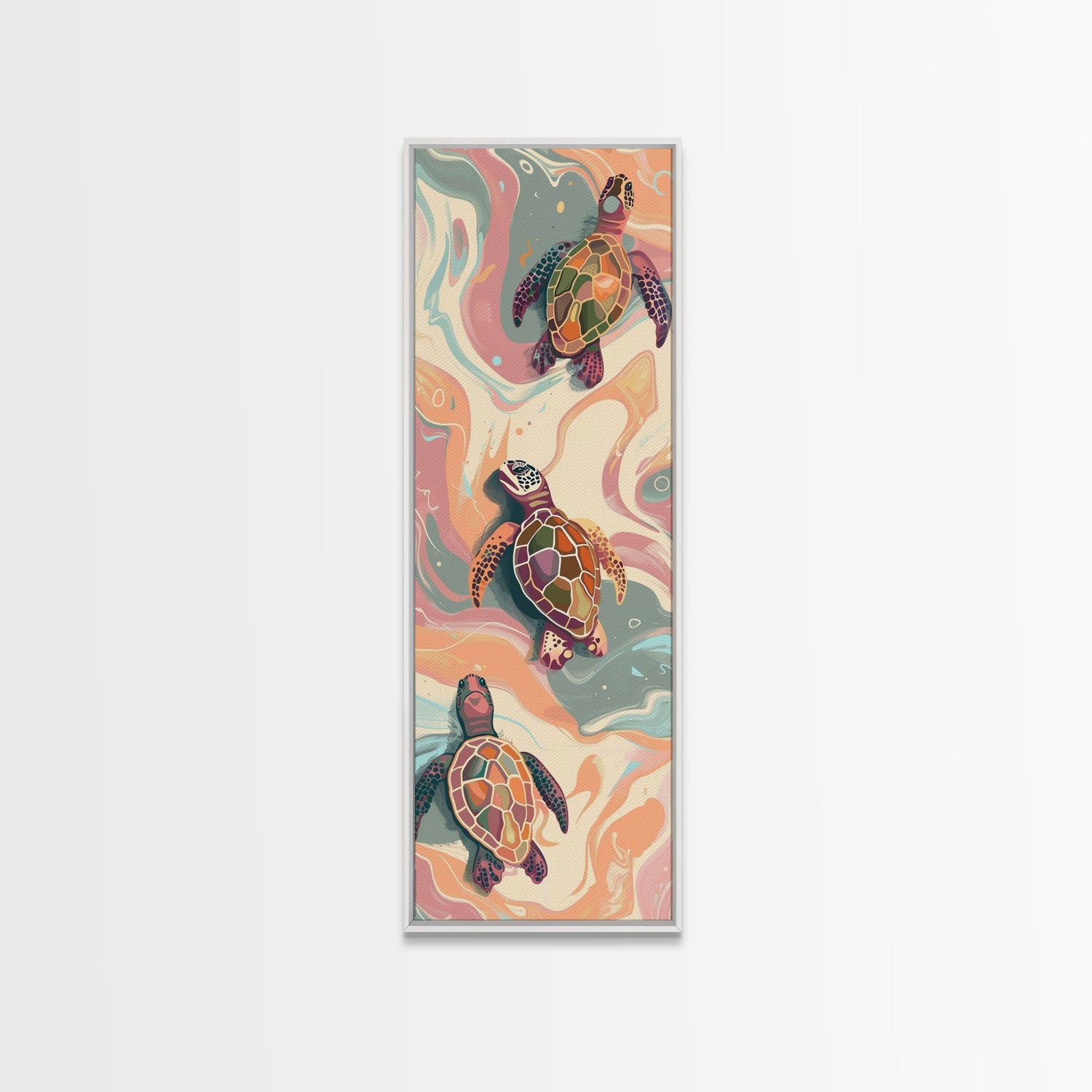 Sea Turtles Marine Life Japanese Style Art On Framed Canvas Print Ukiyo-e Tall Skinny Oceanic Wood Block Wall Decor