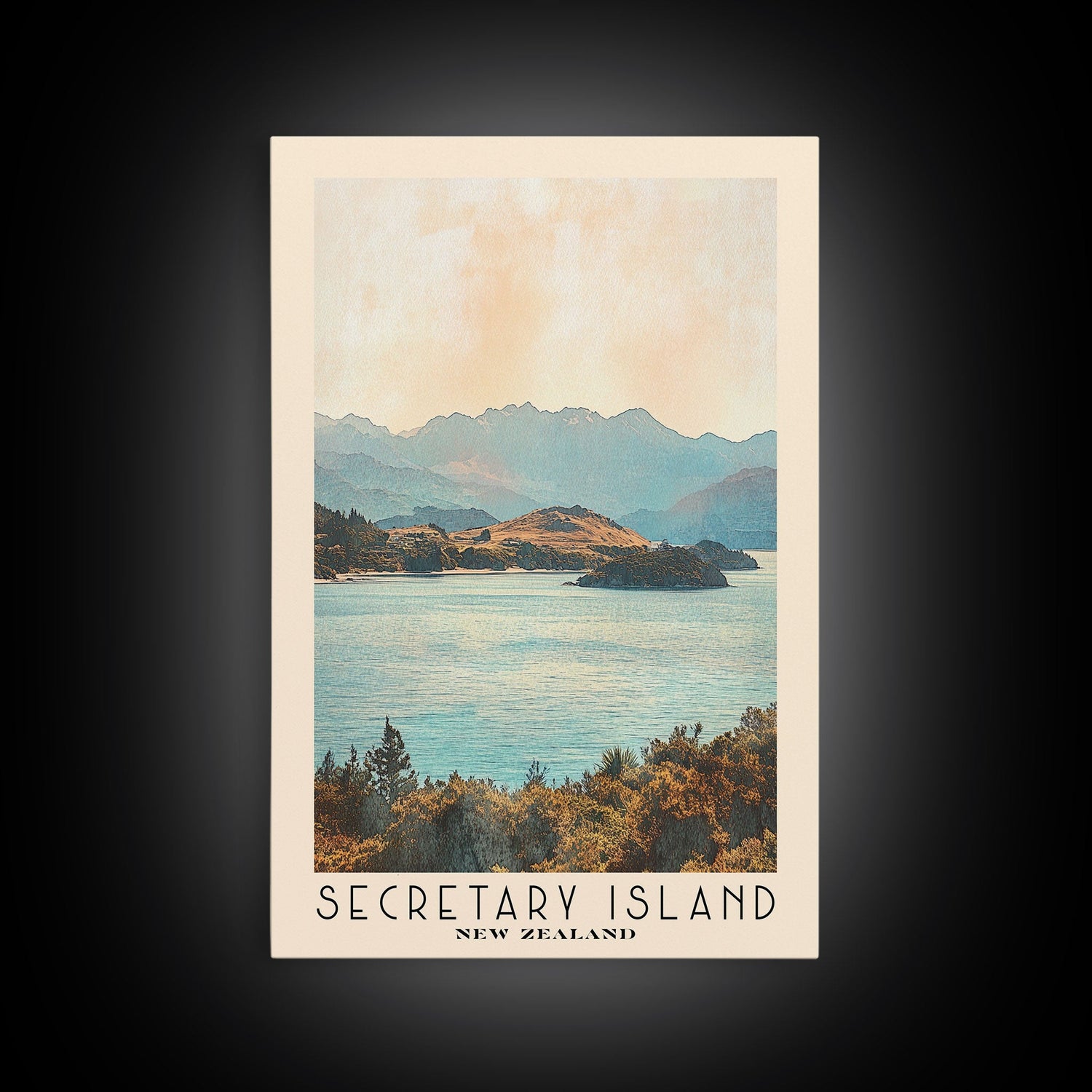 Secretary Island, New Zealand Watercolor Beach Print, Vacation Gift, New Zealand Wall Art, Framed Canvas Print, Framed Beach Painting