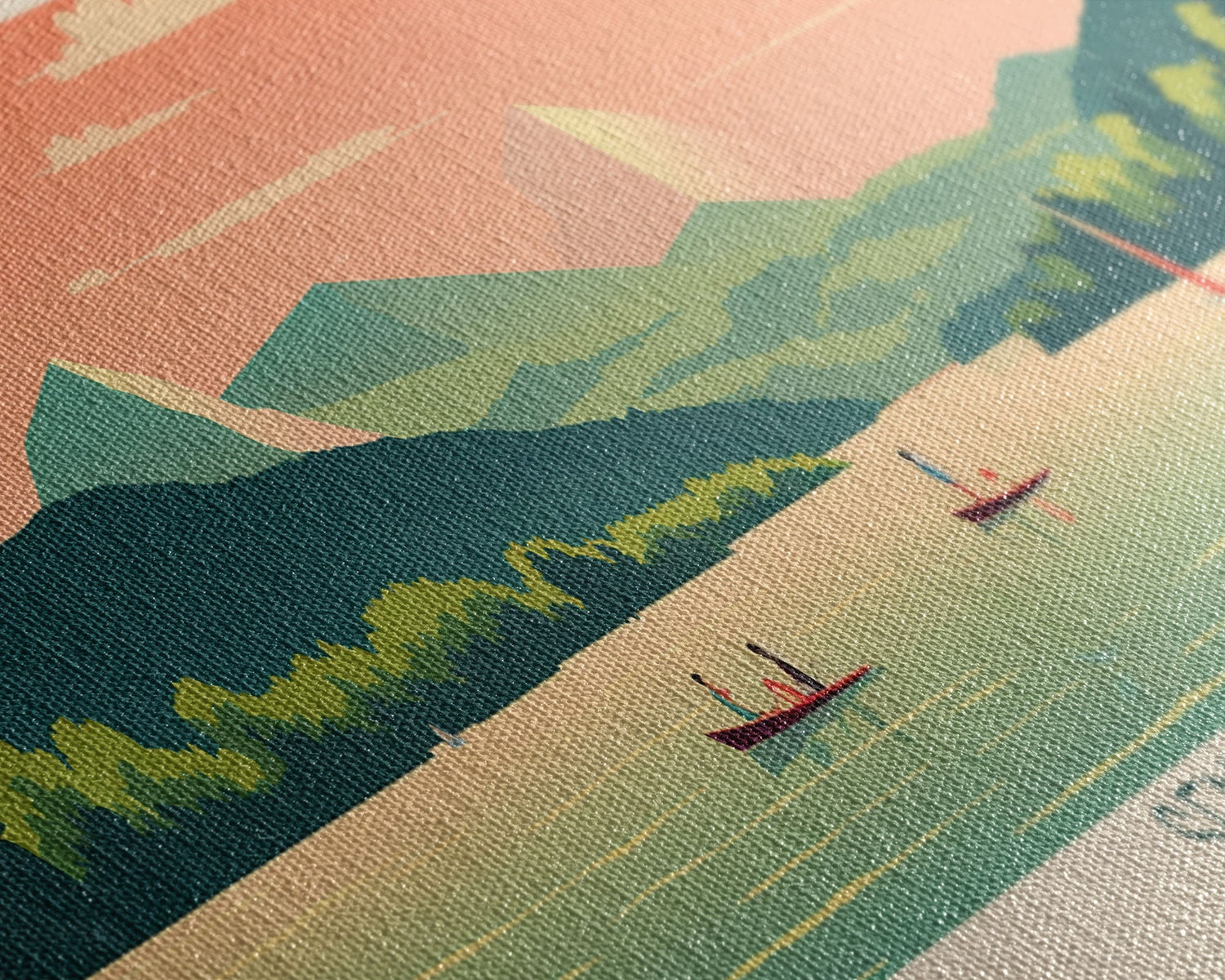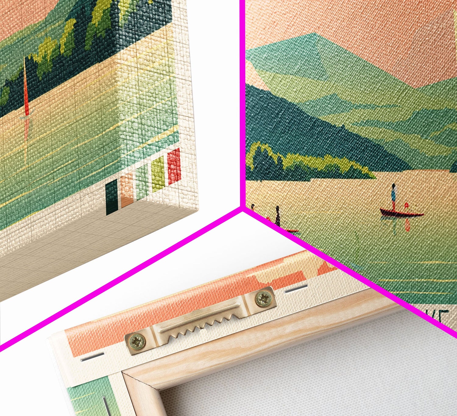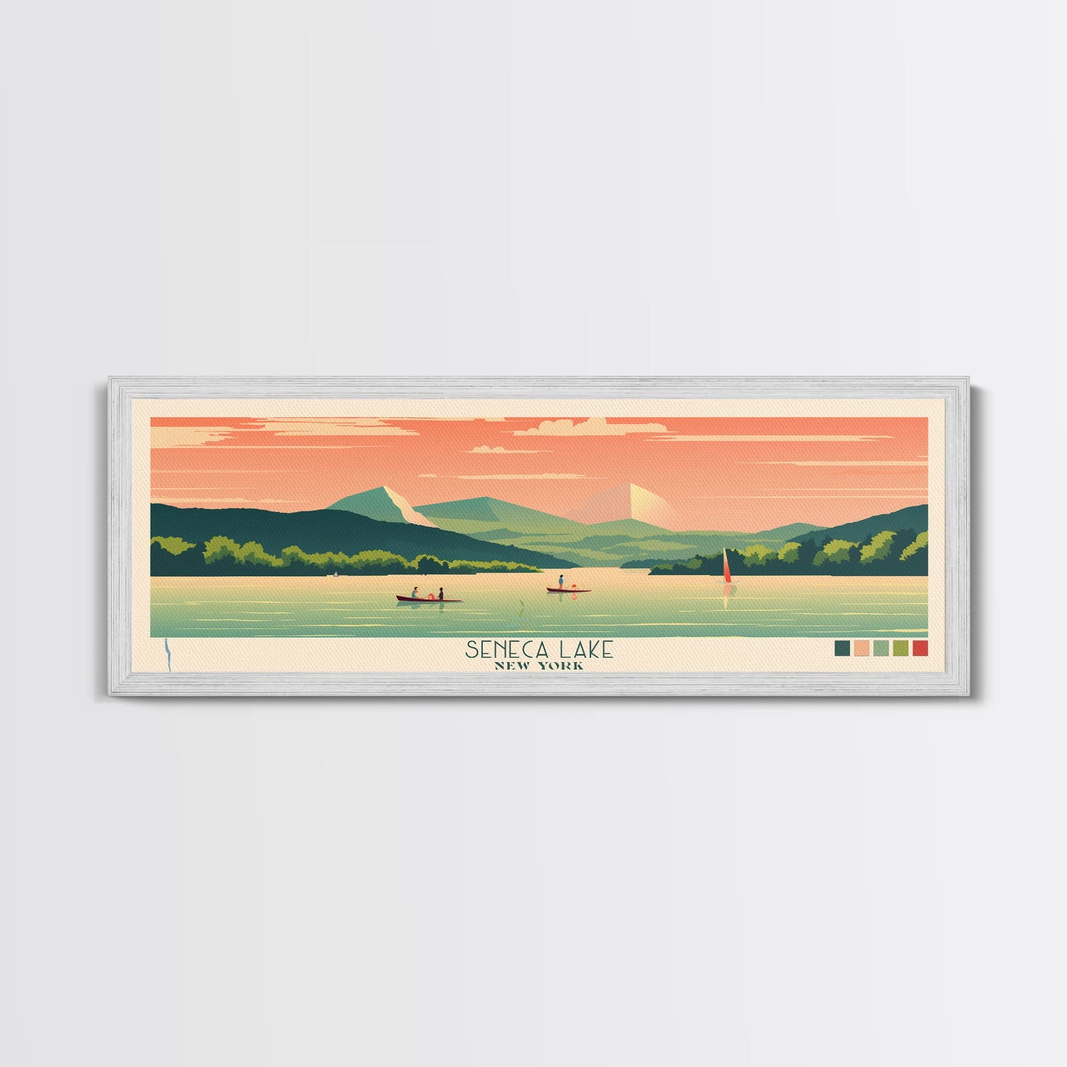 Seneca Lake, New York Framed Canvas Print, Panoramic Wall Art, Midcentury Modern Decor, Pop Art, Bedroom Decoration, Travel Poster