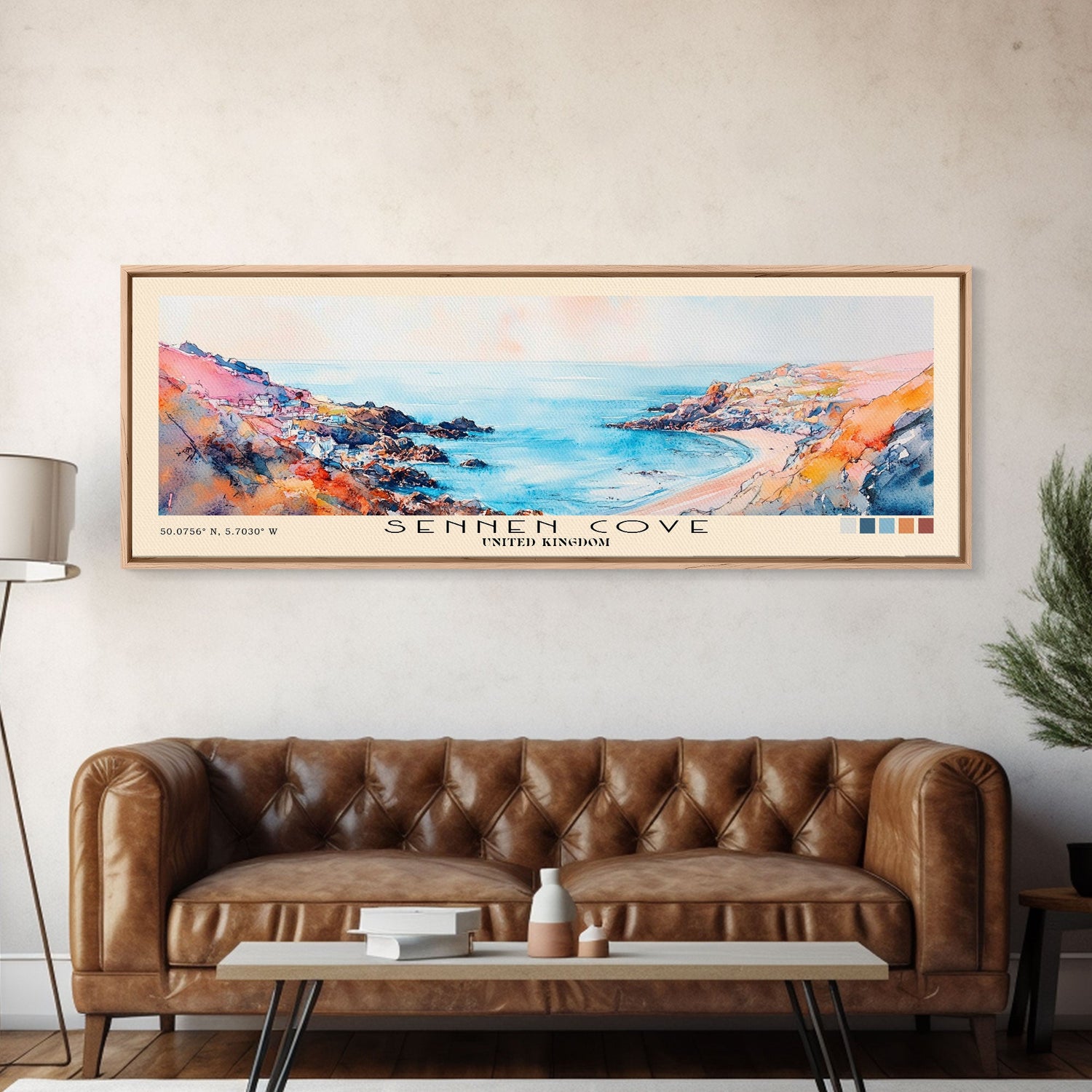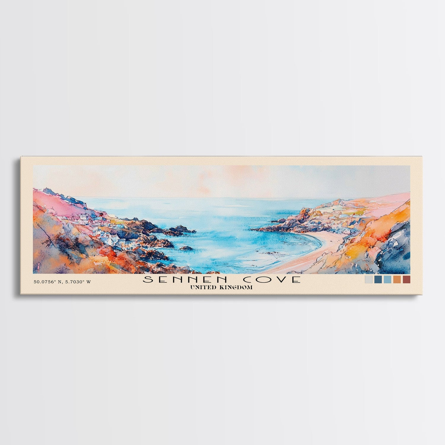 Sennen Cove, United Kingdom Watercolor Beach Print, Vacation Gift, United Kingdom Wall Art, Beach Painting, Beach Decor, Beach Painting - 10x30 Inches / No Frame - Stretched Canvas Only is backordered and will ship as soon as it is back in stock.