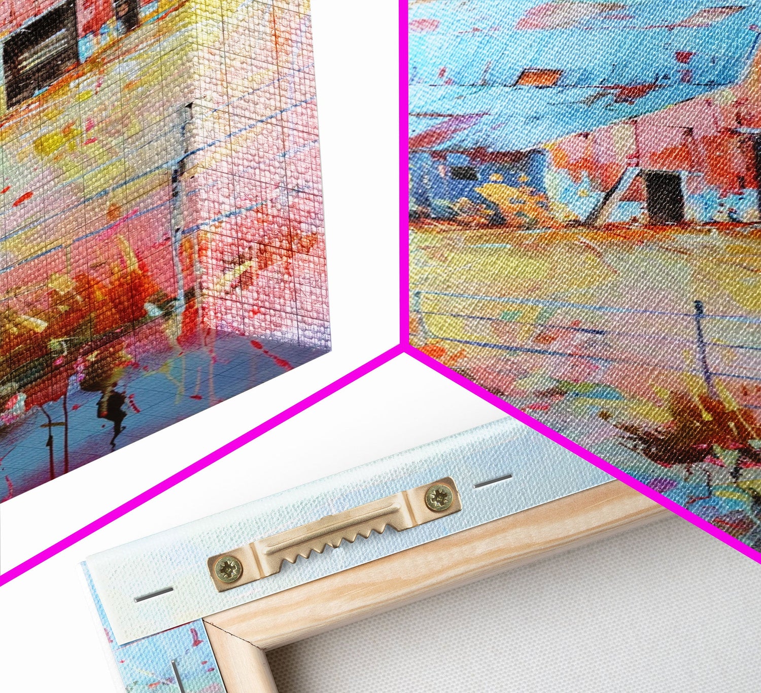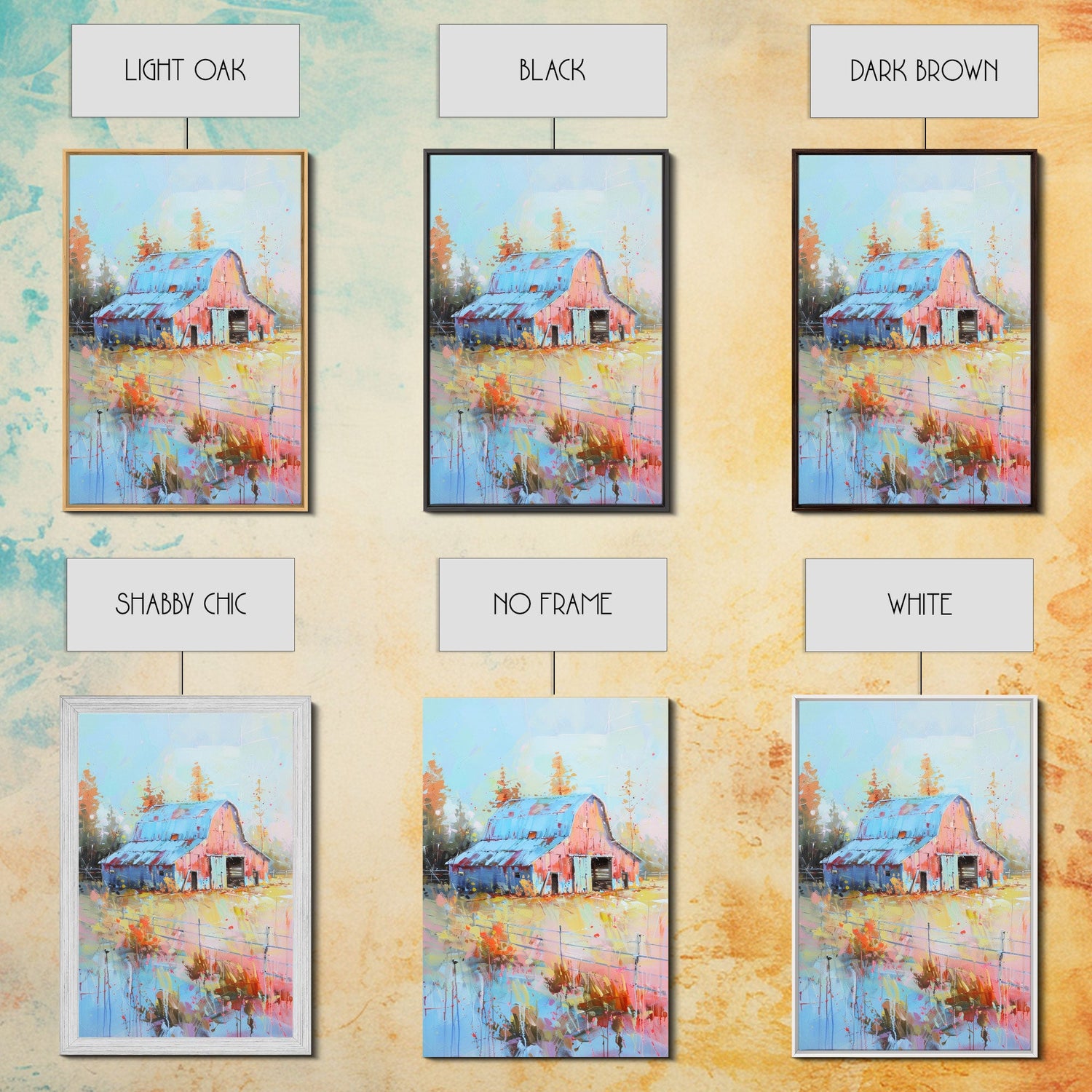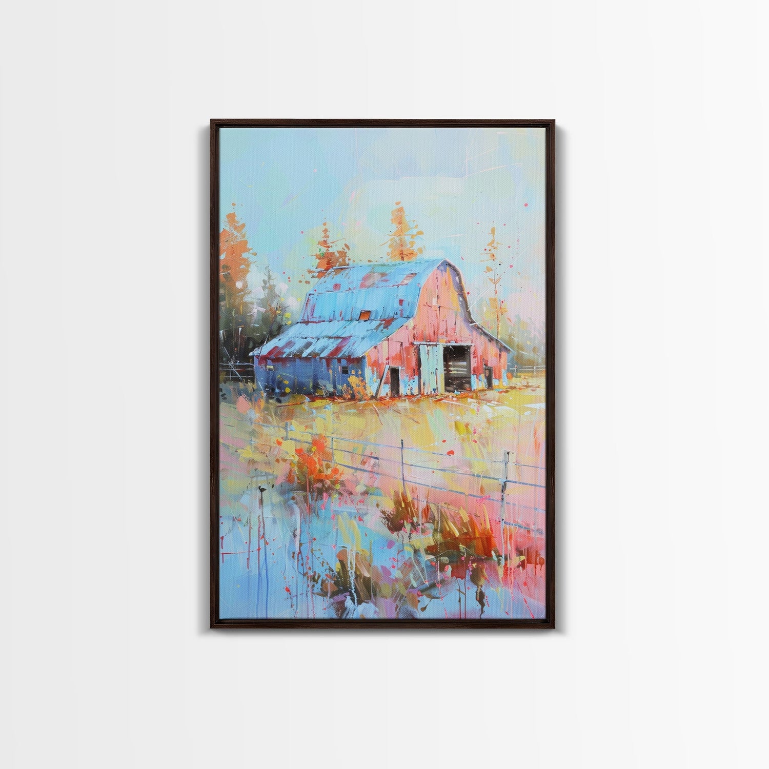 Serene Barn Scene in Soft Pastel Hues - Framed Canvas Print, Rustic Decor, Countryside Art for Bedroom, Farmhouse Wall Art for Living Room