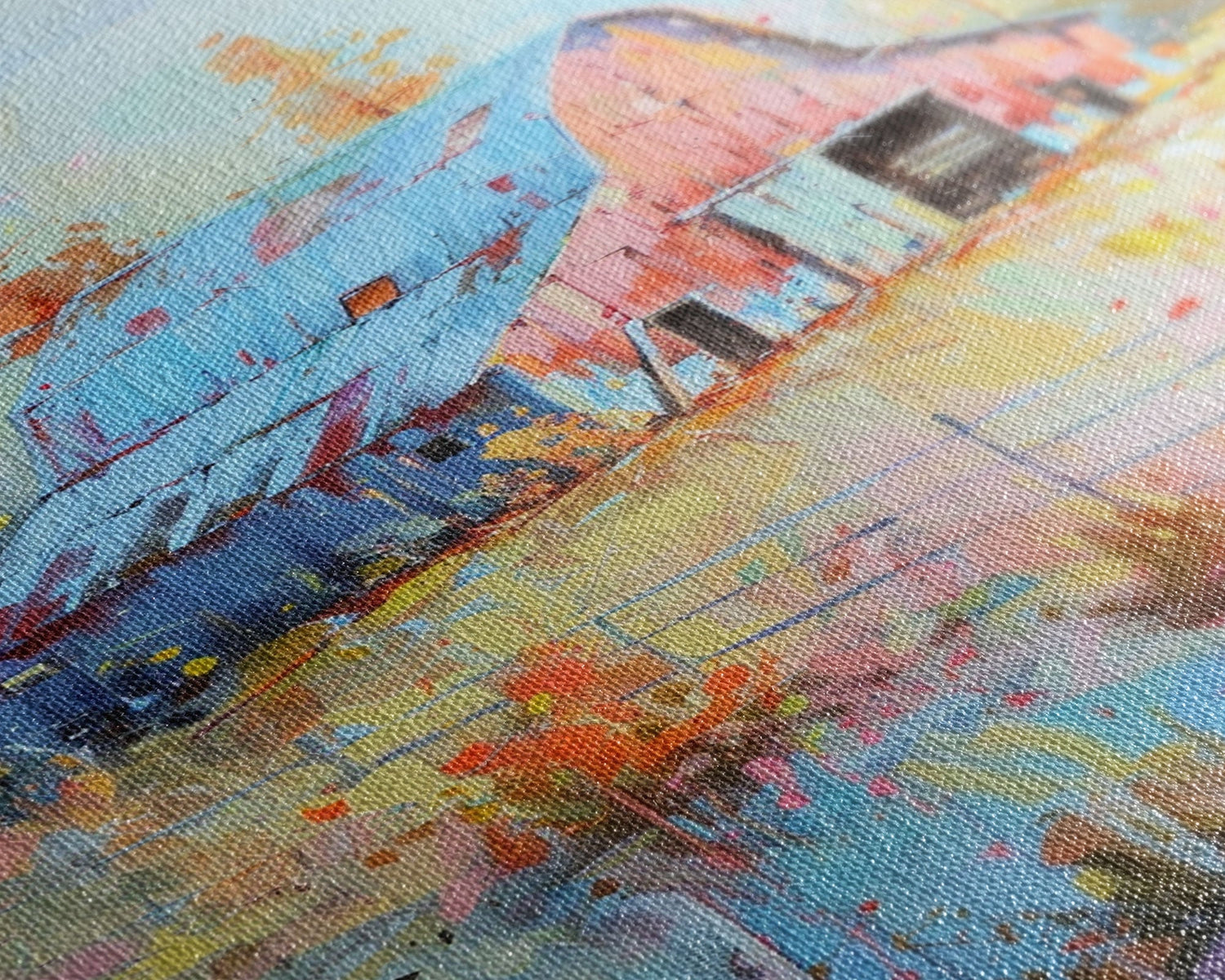 Most of our canvases are made in the USA, with the exception of canvases ordered with the light oak unstained frames, and any large canvases (24x48, 30x60, 16x48 and 20x60) ordered WITH a frame. These are temporarily made in and shipped from Europe, while we try to find a more consistent supplier in the USA.
