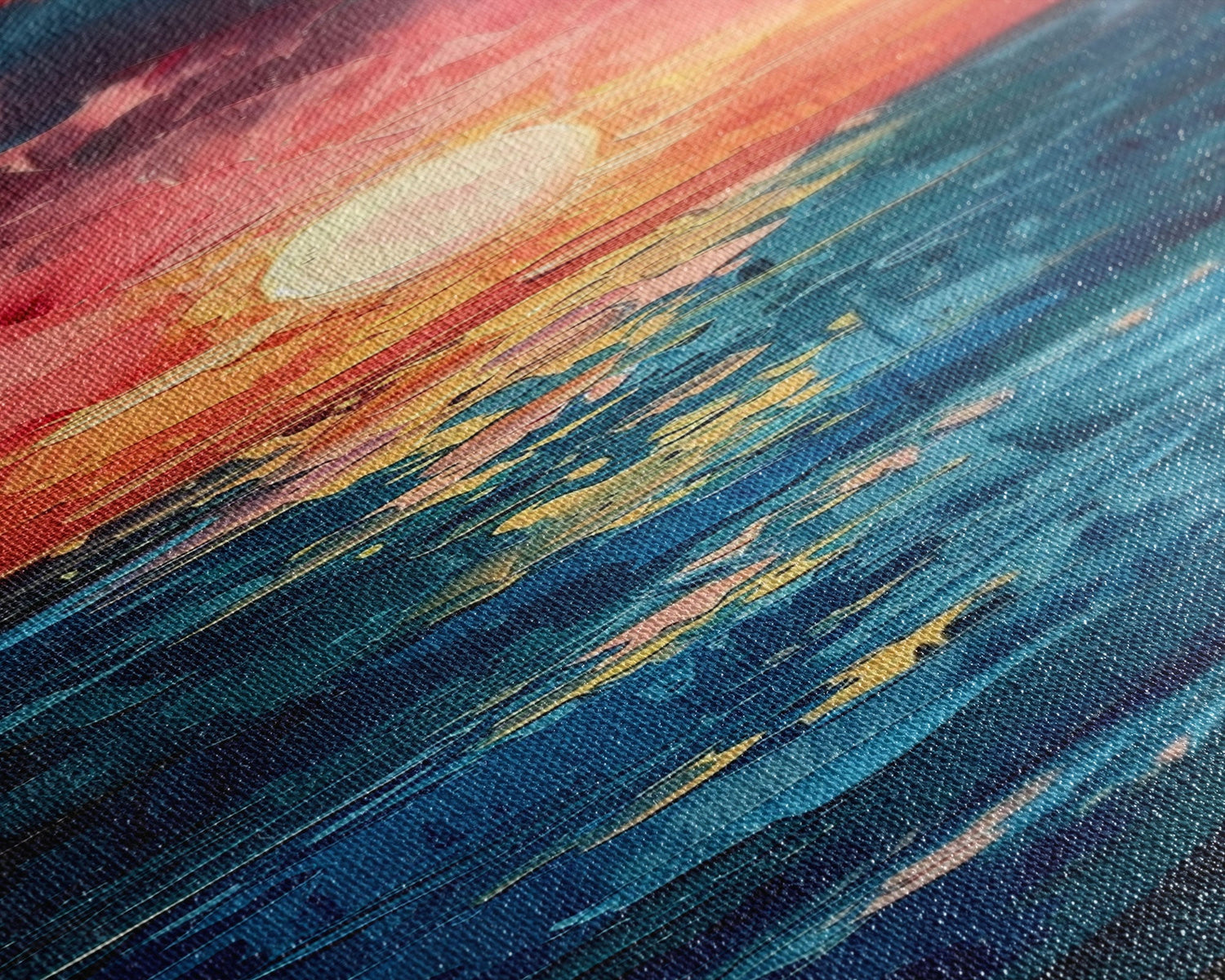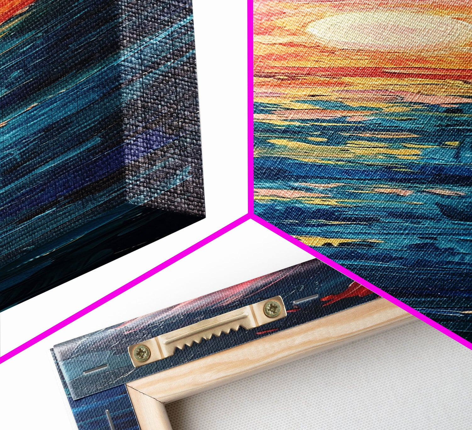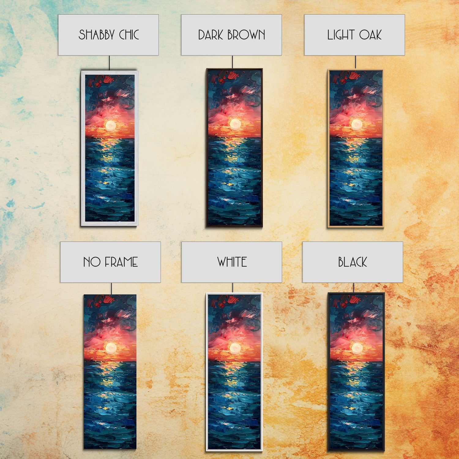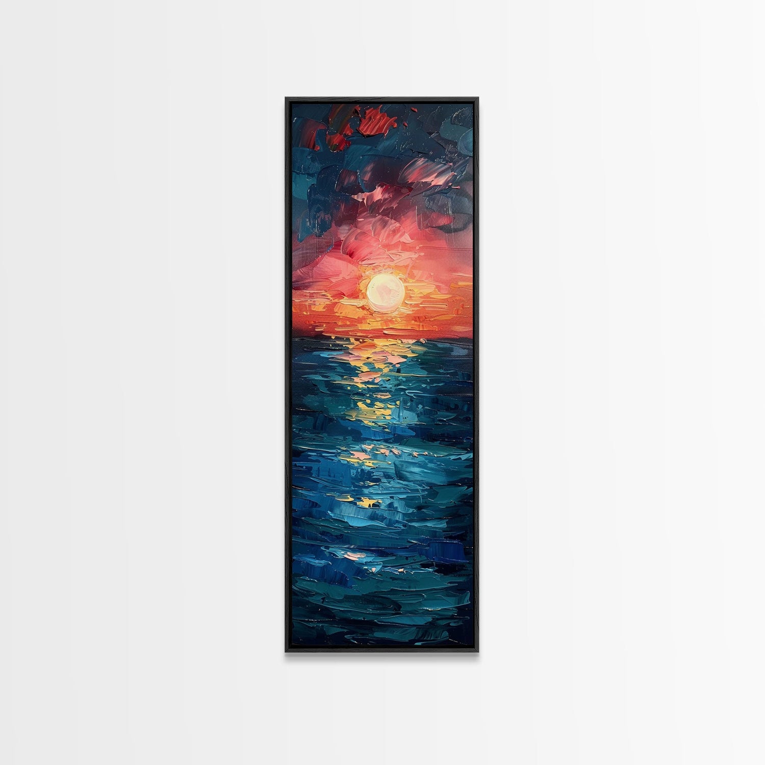 Serene Coastal Sunset Warm Ocean Minimalist Wall Art Framed Canvas Print Tall Art Japanese Style Art