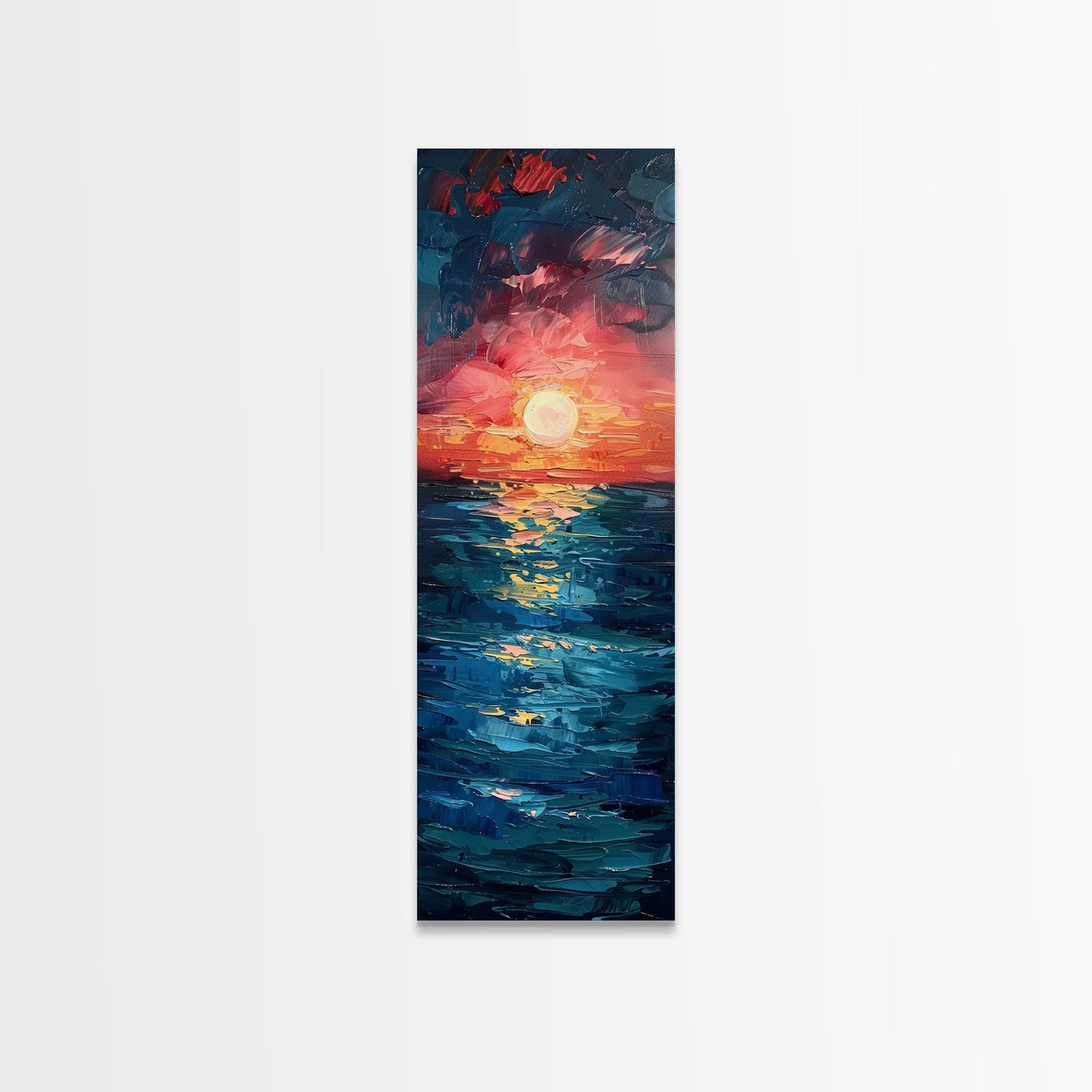 Serene Coastal Sunset Warm Ocean Minimalist Wall Art Framed Canvas Print Tall Art Japanese Style Art - 10x30 Inches / No Frame - Stretched Canvas Only is backordered and will ship as soon as it is back in stock.