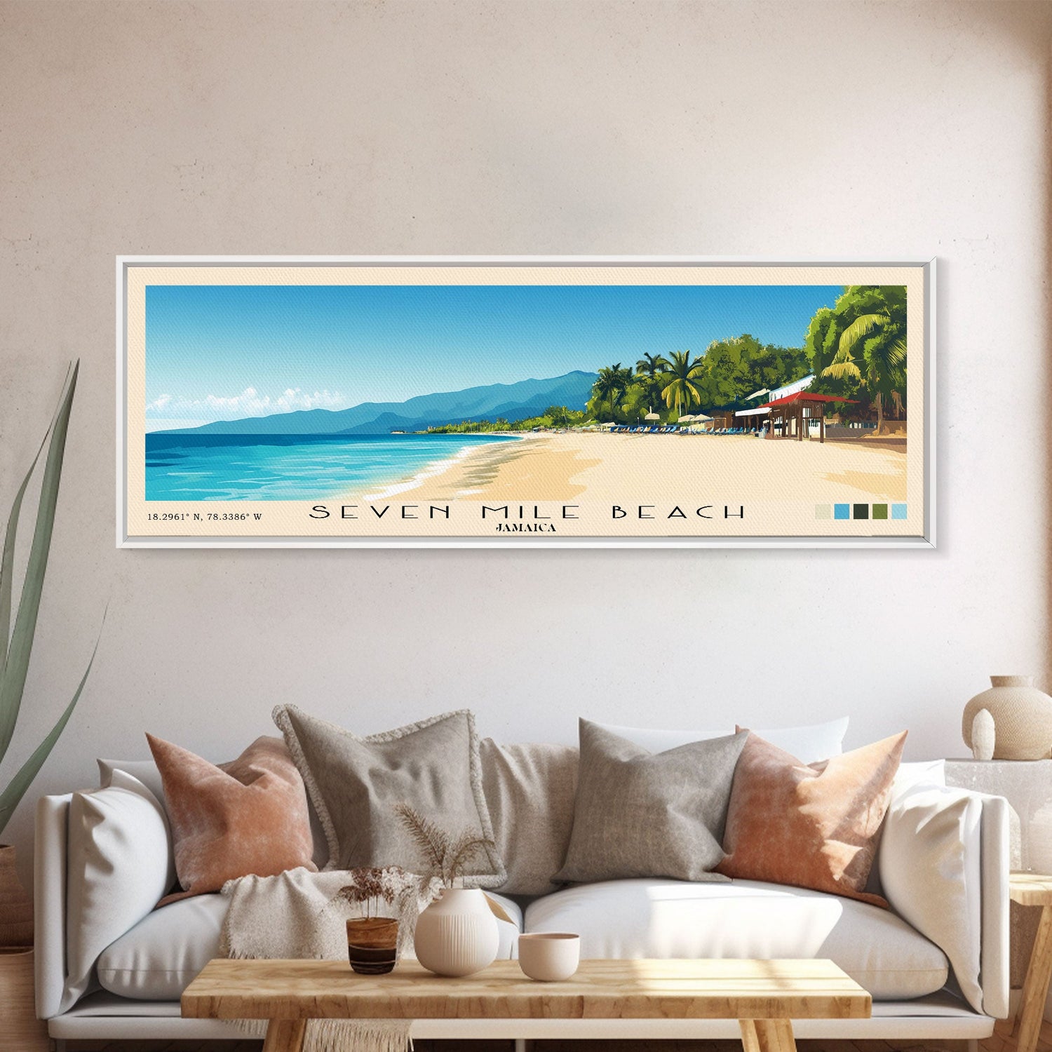 Seven Mile Beach, Jamaica Panoramic Print, Vacation Gift, Jamaica Wall Art, Beach Painting, Beach Decor, Large Wall Art, Wood Frame Art