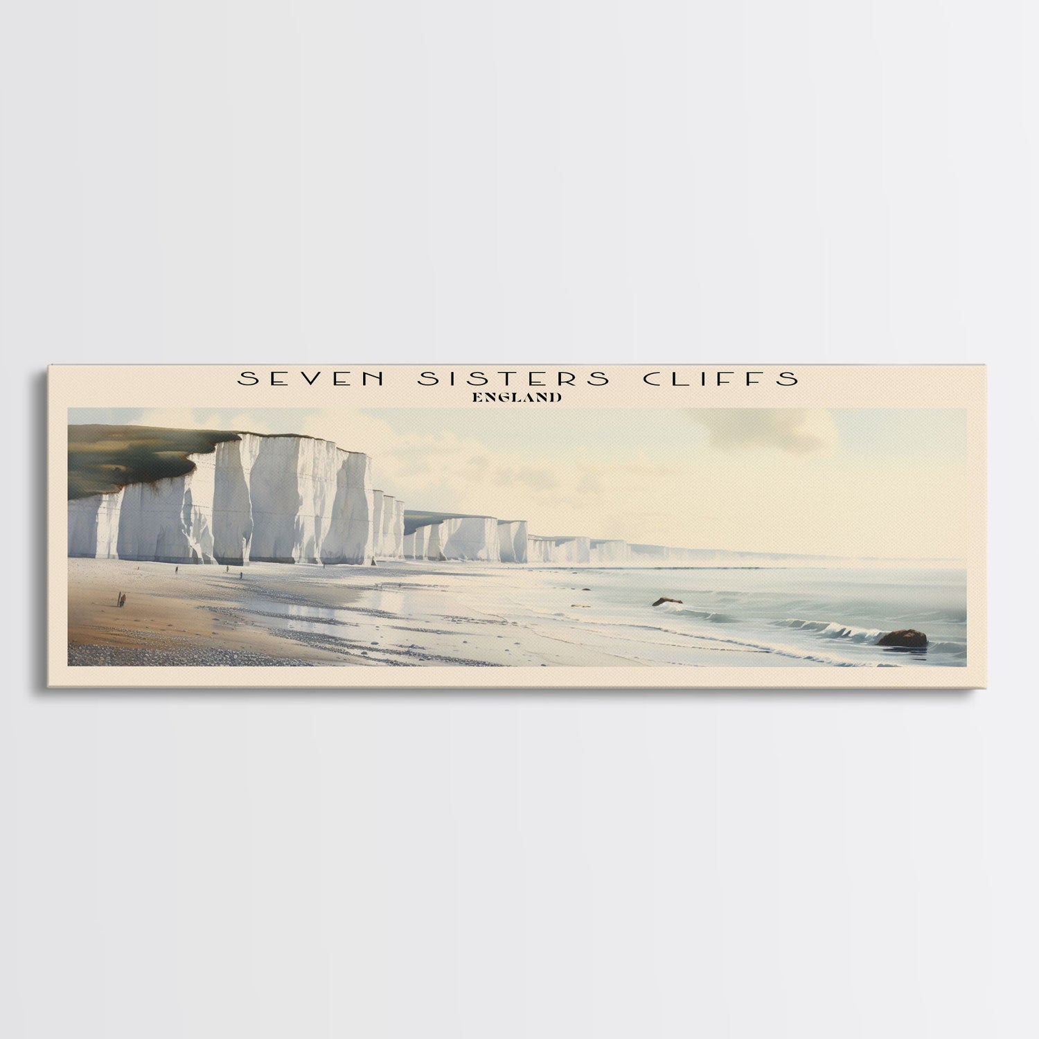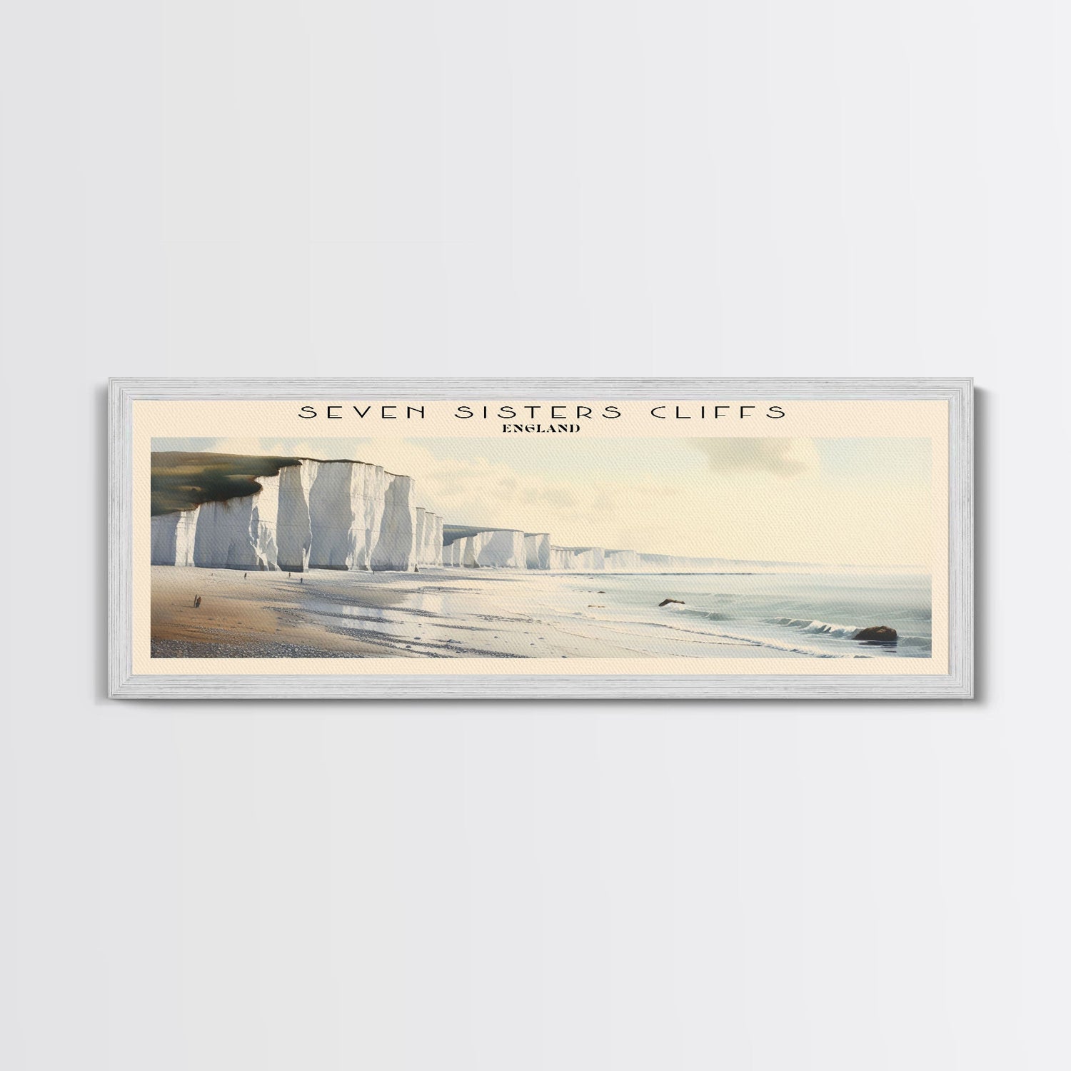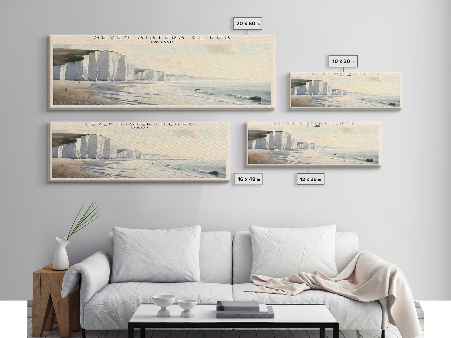 Seven Sisters Cliffs Framed Canvas Print Travel Poster | Wall Art | Home Decor | Gift For Travel Lover | Wall Hanging | Original Art - 10x30 Inches / No Frame - Stretched Canvas Only is backordered and will ship as soon as it is back in stock.