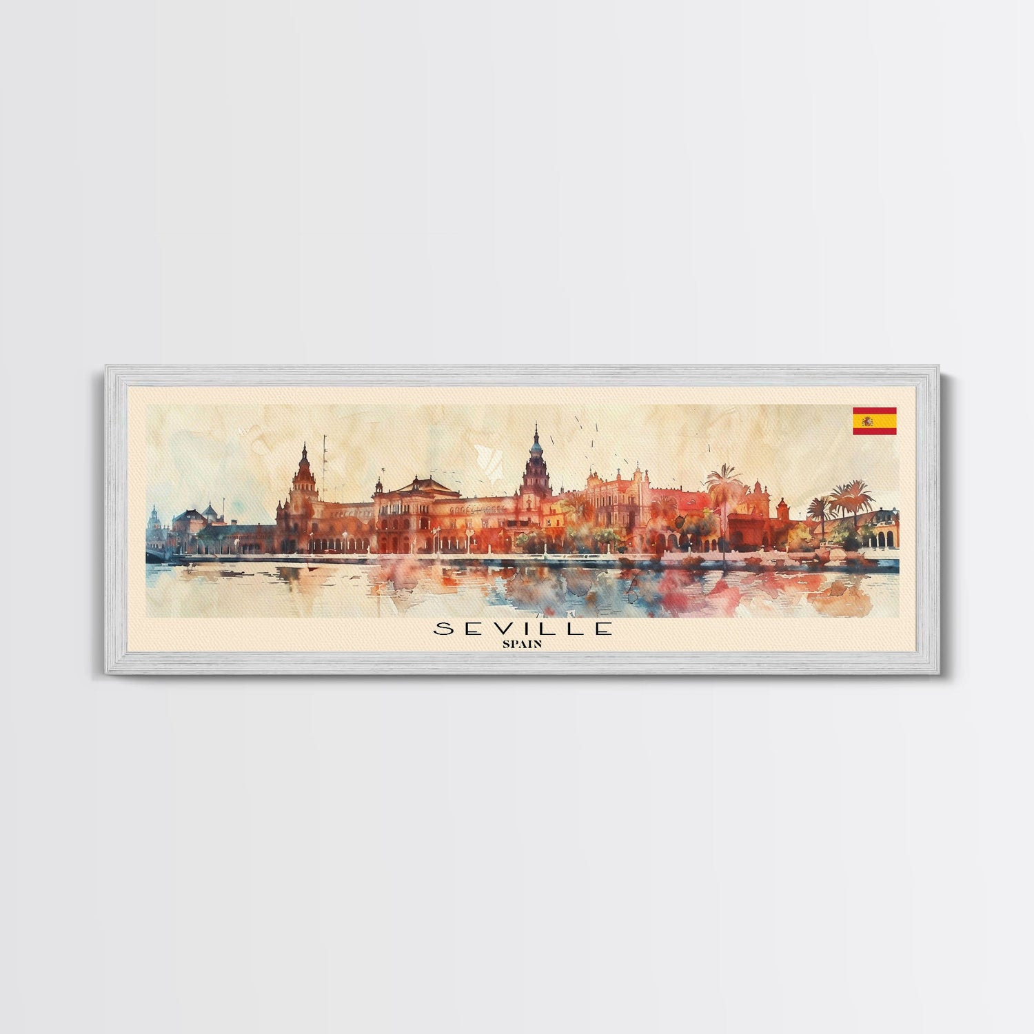 Seville Spain Panoramic Travel Poster, Framed Canvas Print or Metal Wall Art, Travel Art, Home Decor, Panoramic Painting, Midcentury Art