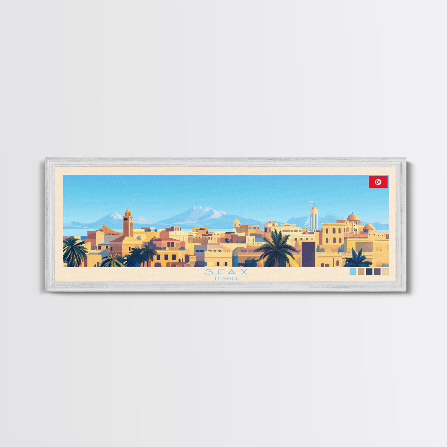 Sfax, Tunisia Panoramic Travel Poster Canvas Print, Sfax, Tunisia Painting, Tunisia Art, Sfax Travel Art, Living Room Painting