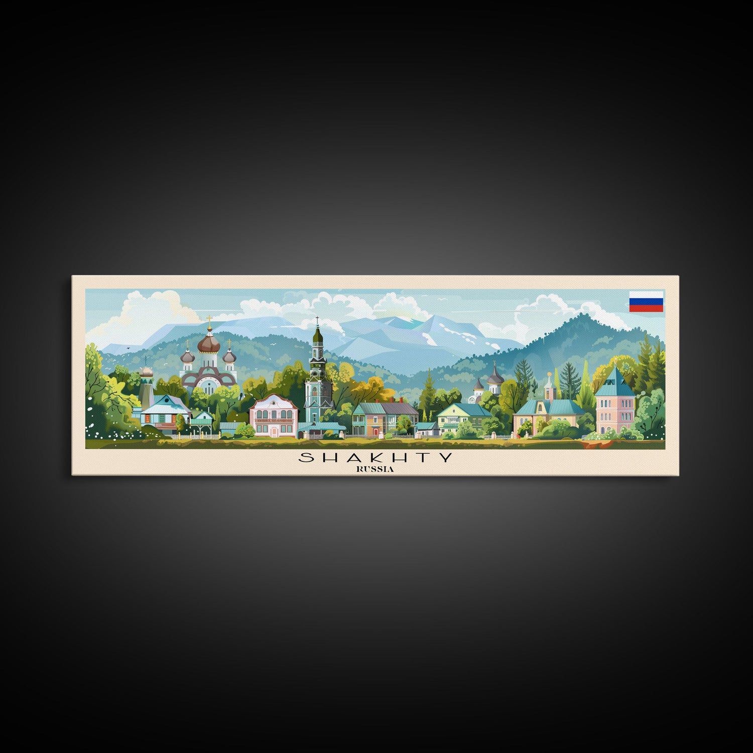 Shakhty Russia Panoramic Travel Poster, Framed Canvas Print or Metal Wall Art, Travel Art, Home Decor, Panoramic Painting, Midcentury Art