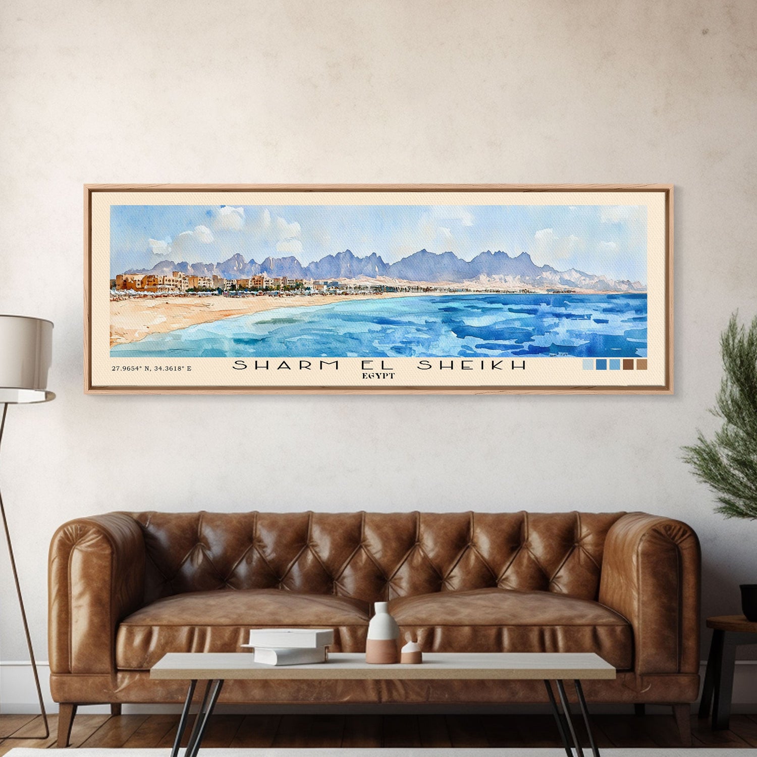 Sharm El Sheikh, Egypt Watercolor Beach Print, Vacation Gift, Egypt Wall Art, Beach Painting, Beach Decor, Beach Painting - 10x30 Inches / No Frame - Stretched Canvas Only is backordered and will ship as soon as it is back in stock.