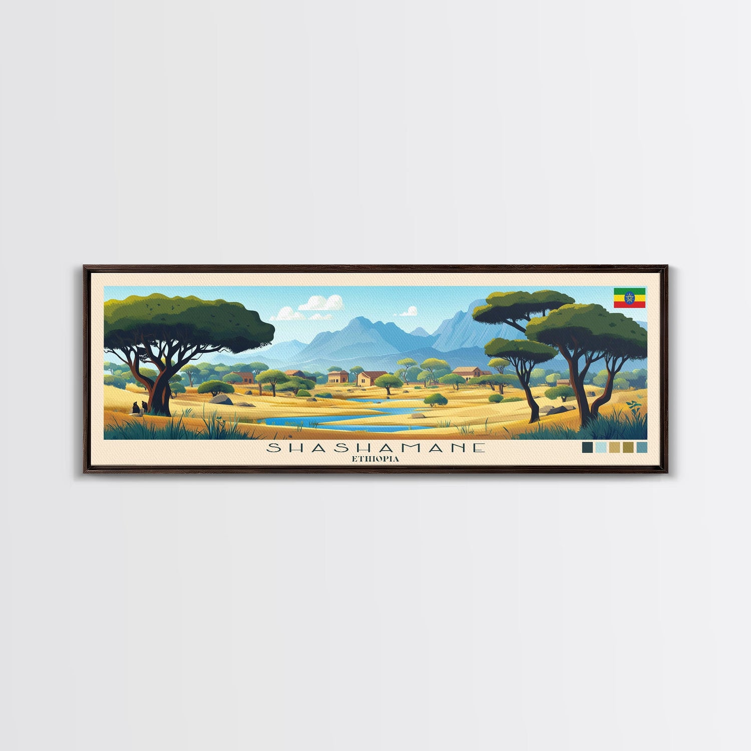 Shashamane, Ethiopia Travel Poster Panoramic Canvas Print, Shashamane, Ethiopia Painting, Ethiopia Art, Shashamane Travel Art, Guest Room Painting