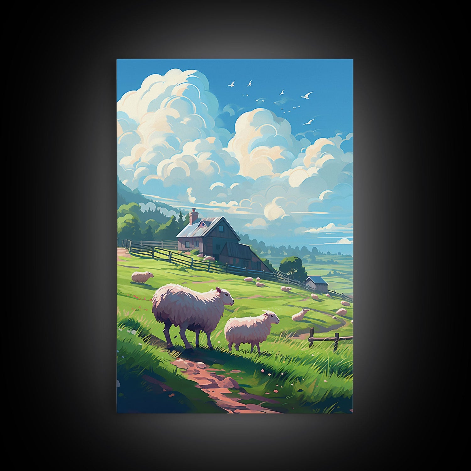Sheep Wall Art, Animal Wall Art, Farm Print, Barn Decor, Canvas Print, Wall Art, Vertical Art, Farmhouse Wall Decor, Summer Wall Print