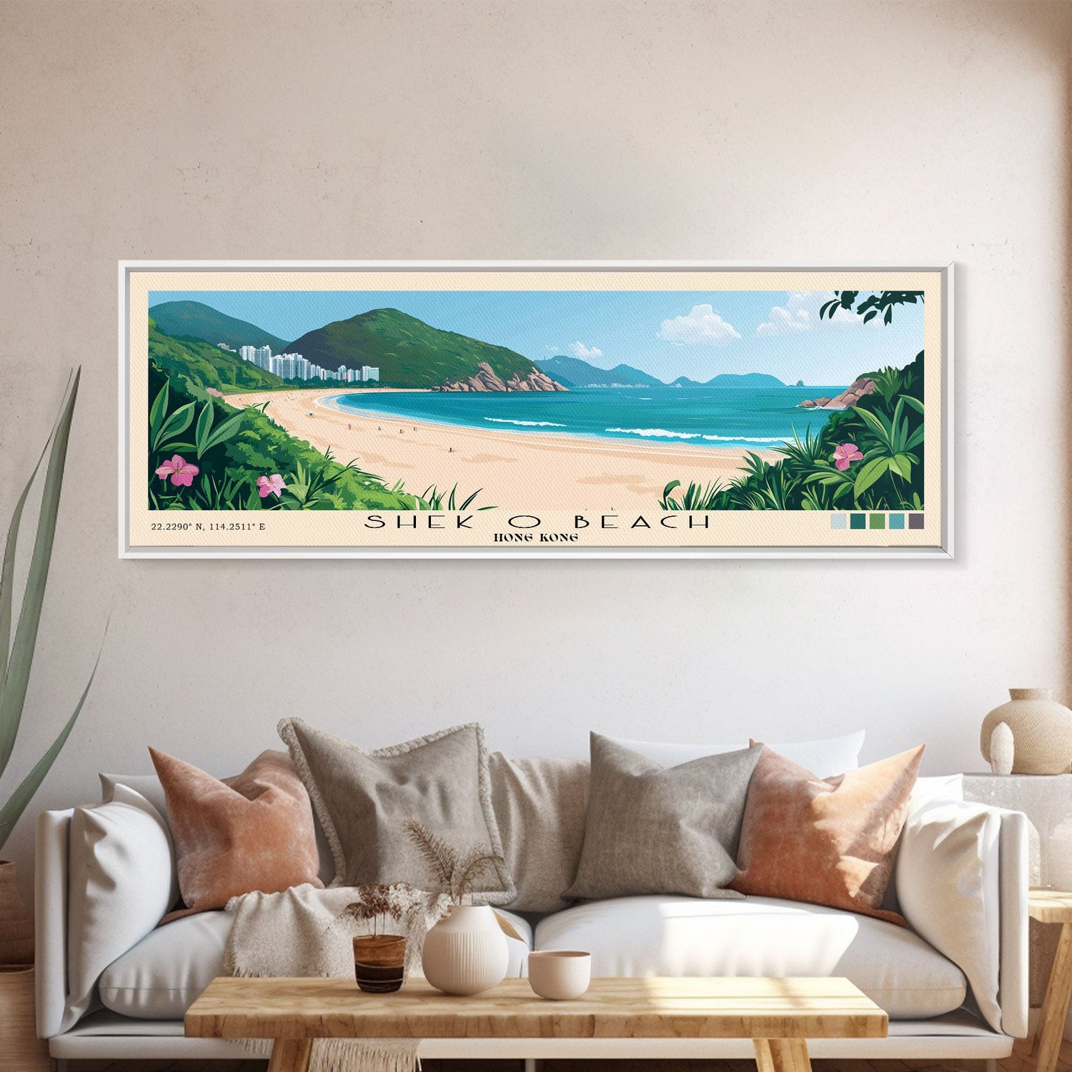 Shek O Beach, Hong Kong Panoramic Print, Vacation Gift, Hong Kong Wall Art, Beach Painting, Beach Decor, Beach Or Lakehouse Art - 10x30 Inches / No Frame - Stretched Canvas Only is backordered and will ship as soon as it is back in stock.