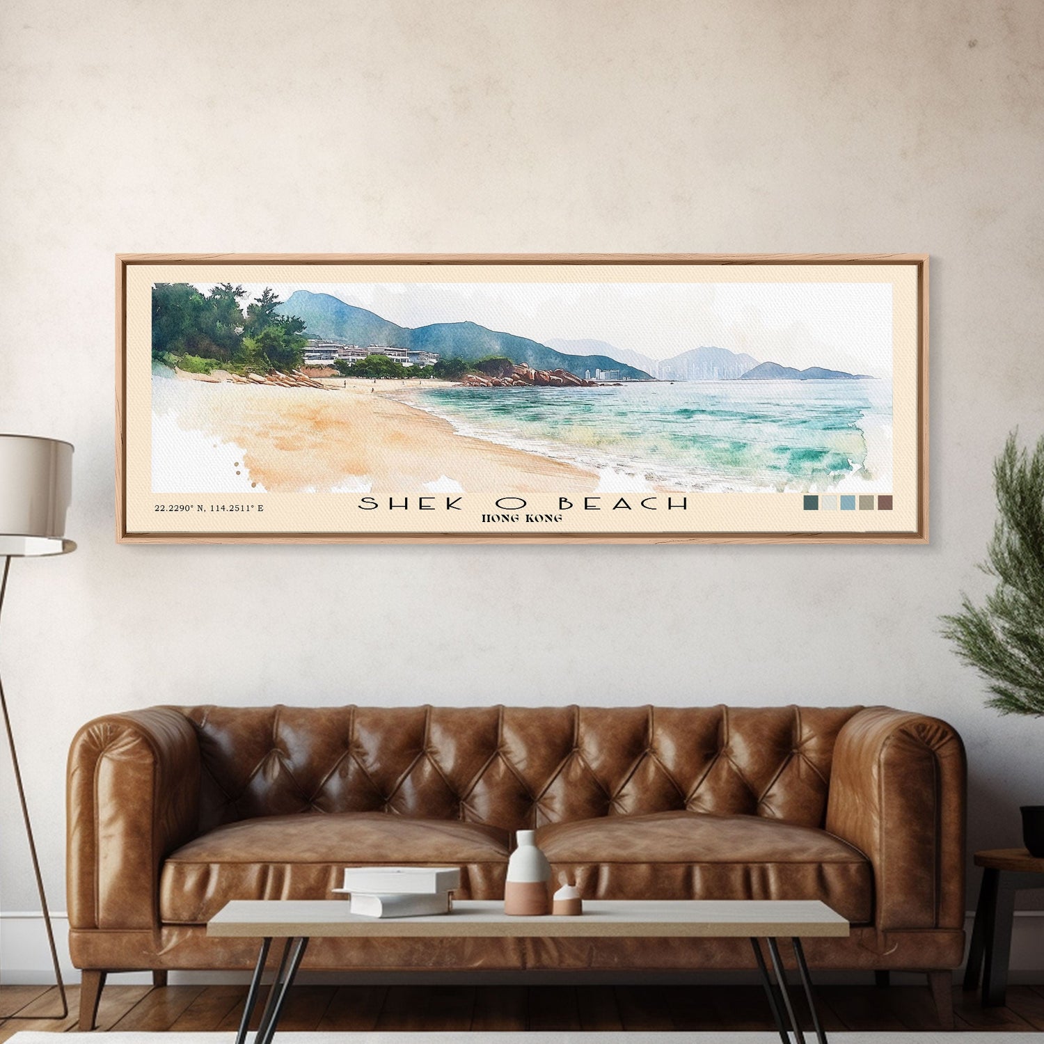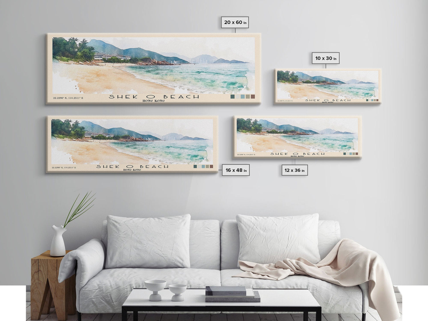 Shek O Beach, Hong Kong Watercolor Print, Vacation Gift, Hong Kong Wall Art, Beach Painting, Beach Decor, Large Wall Art, Wood Frame Art - 10x30 Inches / No Frame - Stretched Canvas Only is backordered and will ship as soon as it is back in stock.