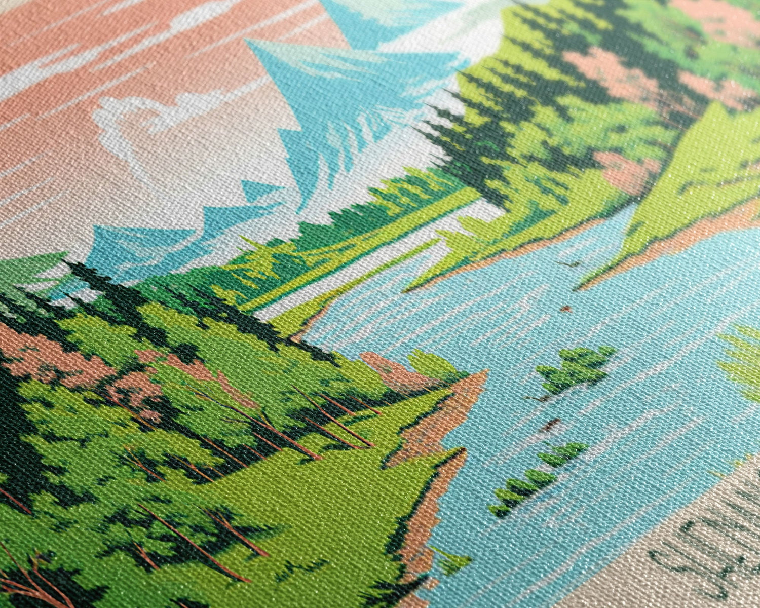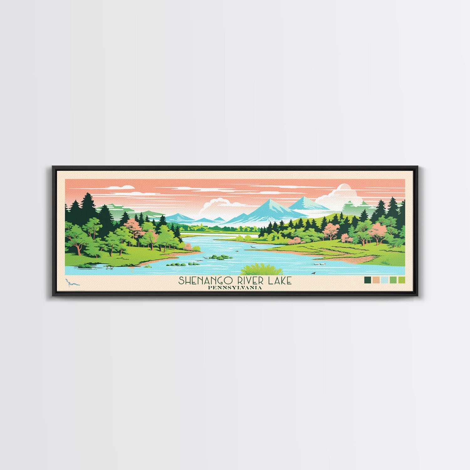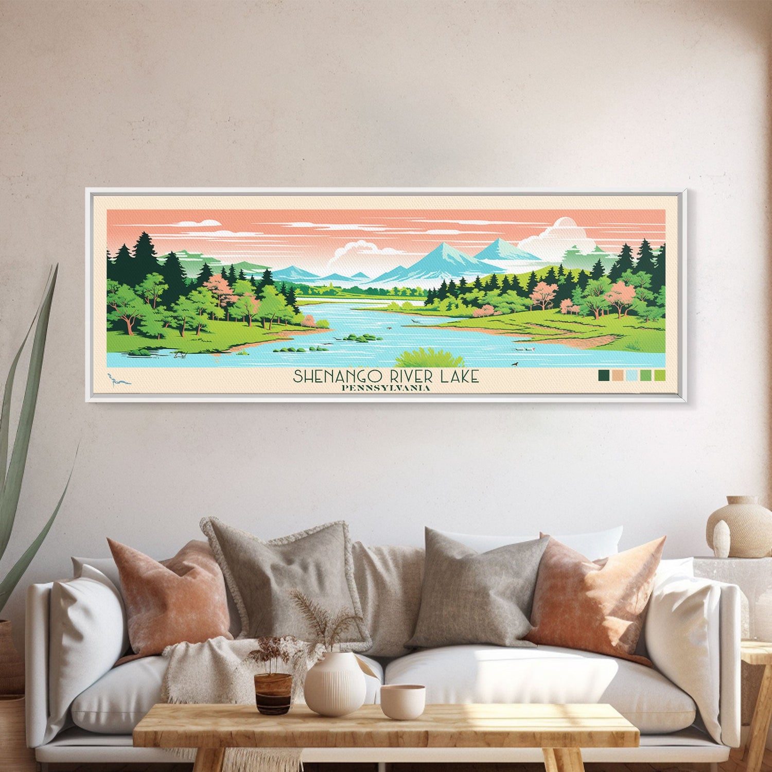 Shenango River Lake, Pennsylvania Framed Canvas Print, Panoramic Travel Poster, Midcentury Modern Art, Wall Art, Pop Art, Home Decoration