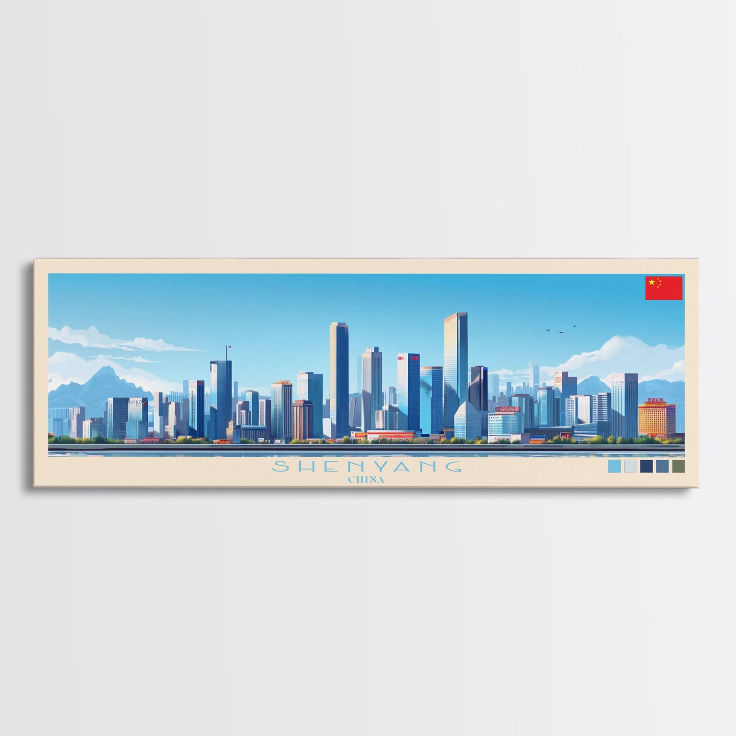 Shenyang, China Panoramic Travel Poster Canvas Print, Shenyang, China Painting, China Art, Shenyang Travel Art, Guest Room Painting