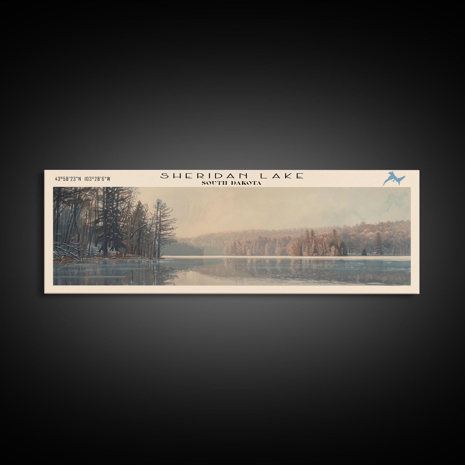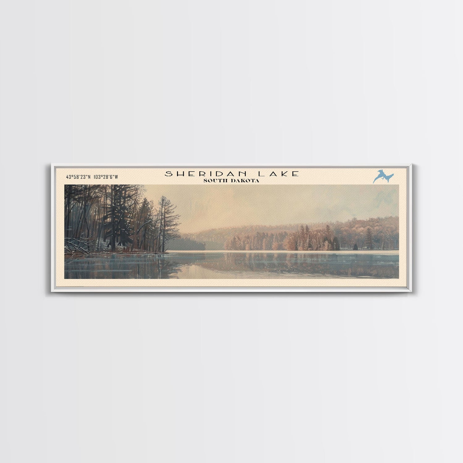 Sheridan Lake South Dakota Panoramic Framed Canvas Print, Lake House Decor, Wall Art, Travel Poster, Serene Landscape, Modern Art