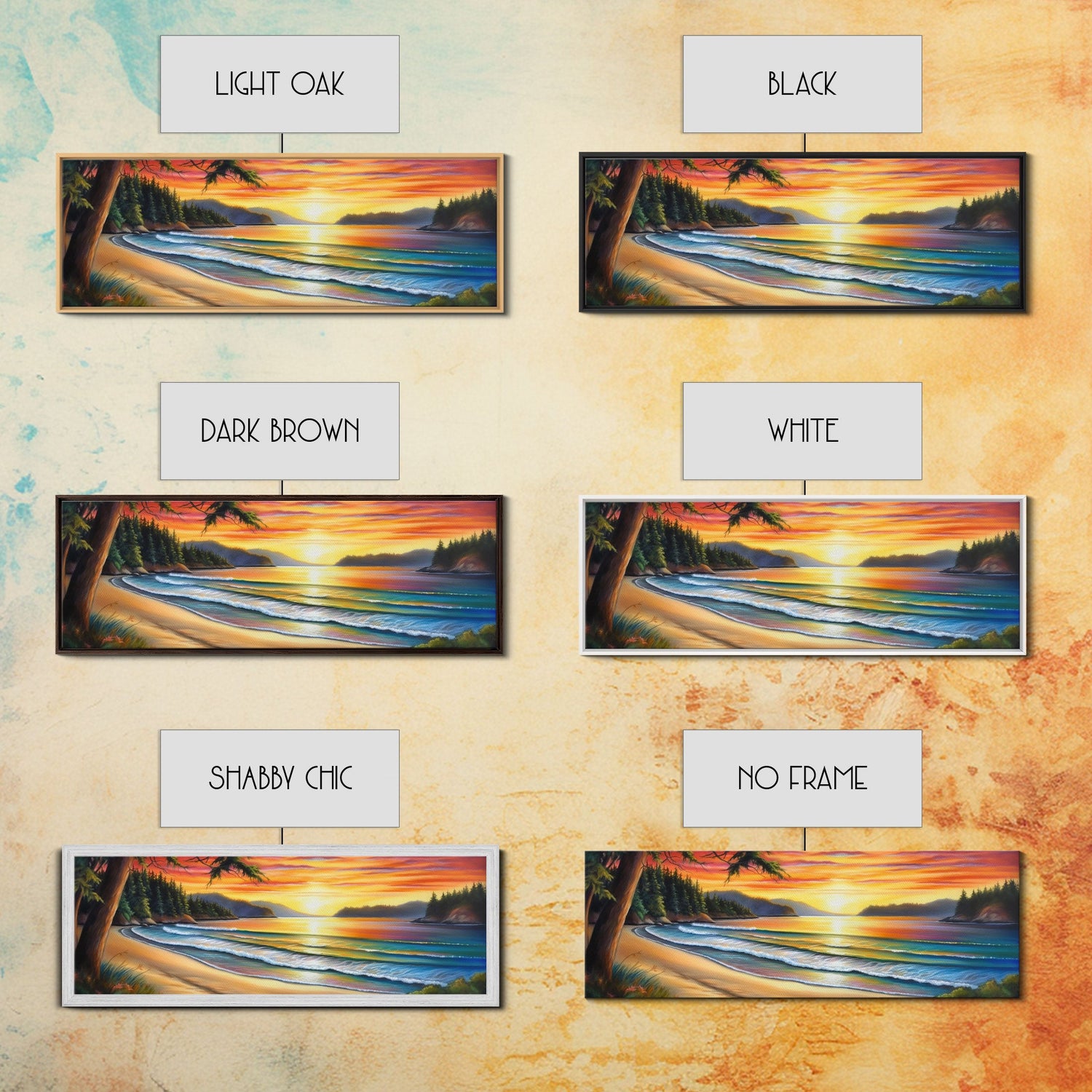 Shoreline Canvas Art Print, Cove, Trees, Mountain, Sunset, Canvas Wall Art Beach, Beach Scene Art, Panoramic, Wall Art, Canvas Print