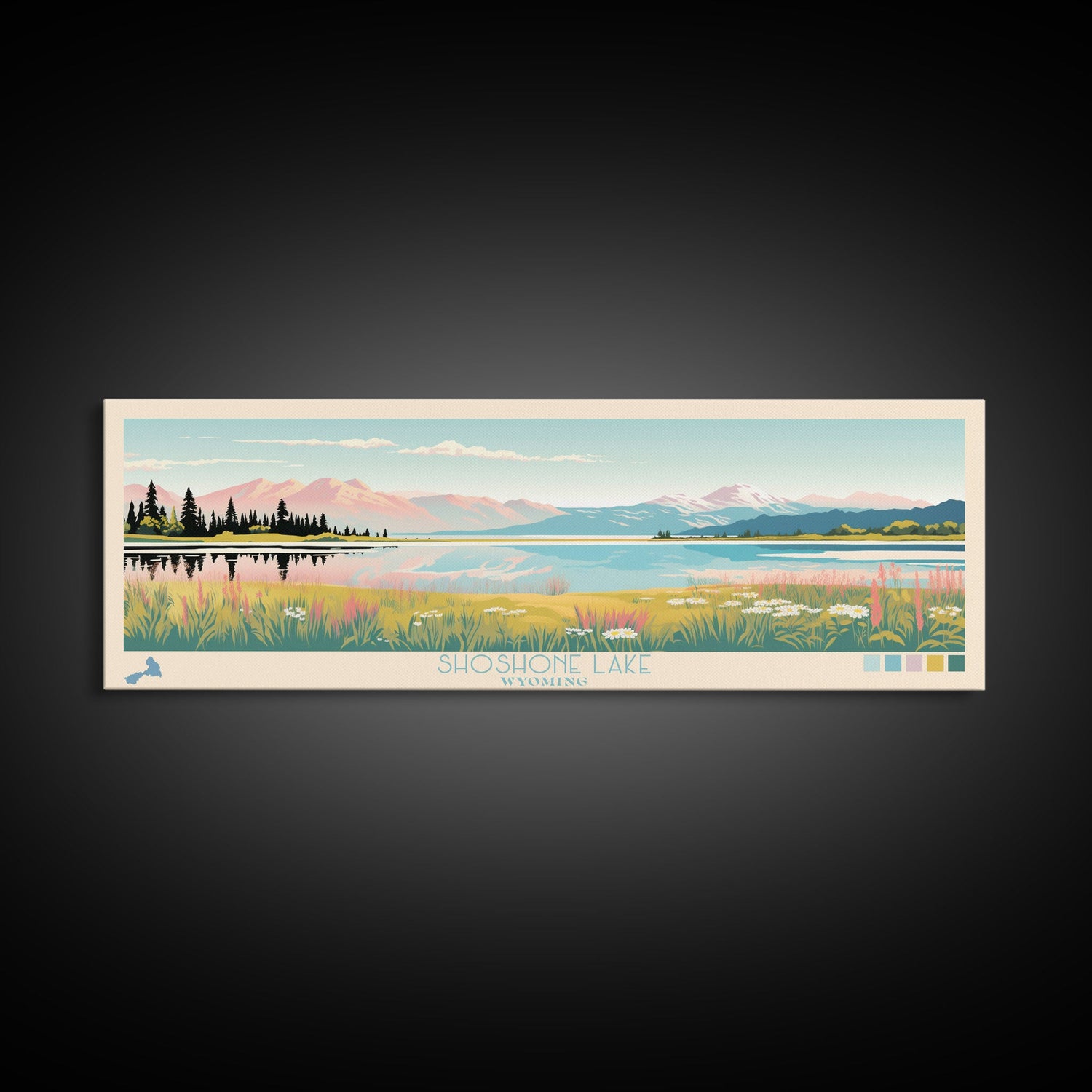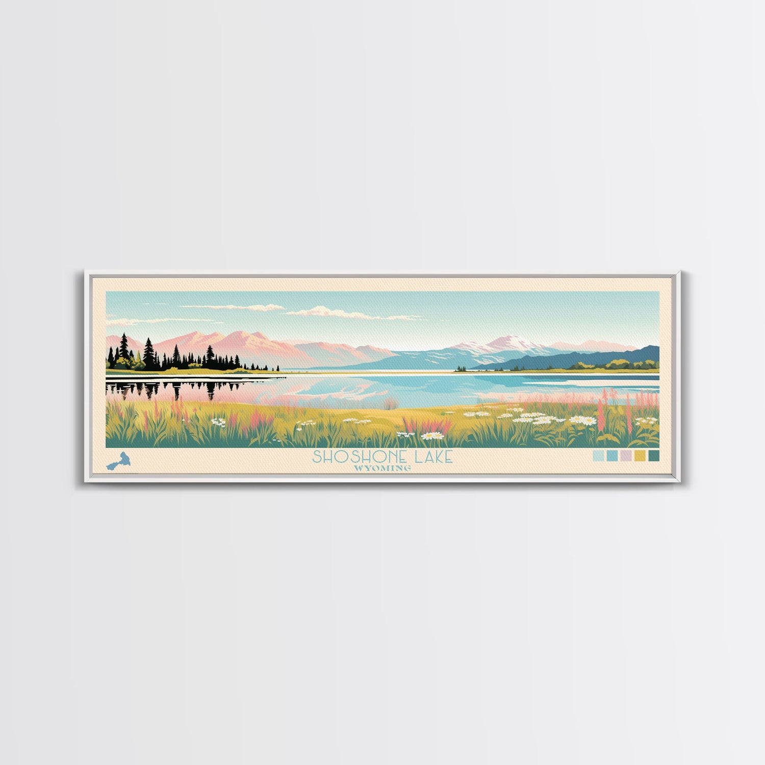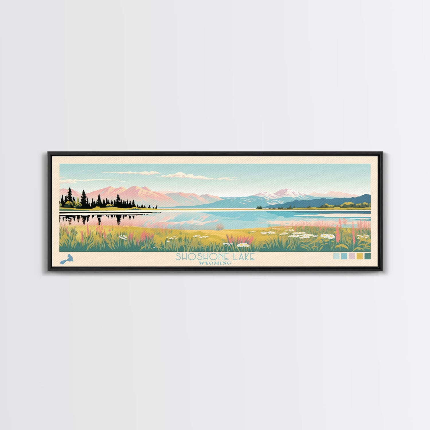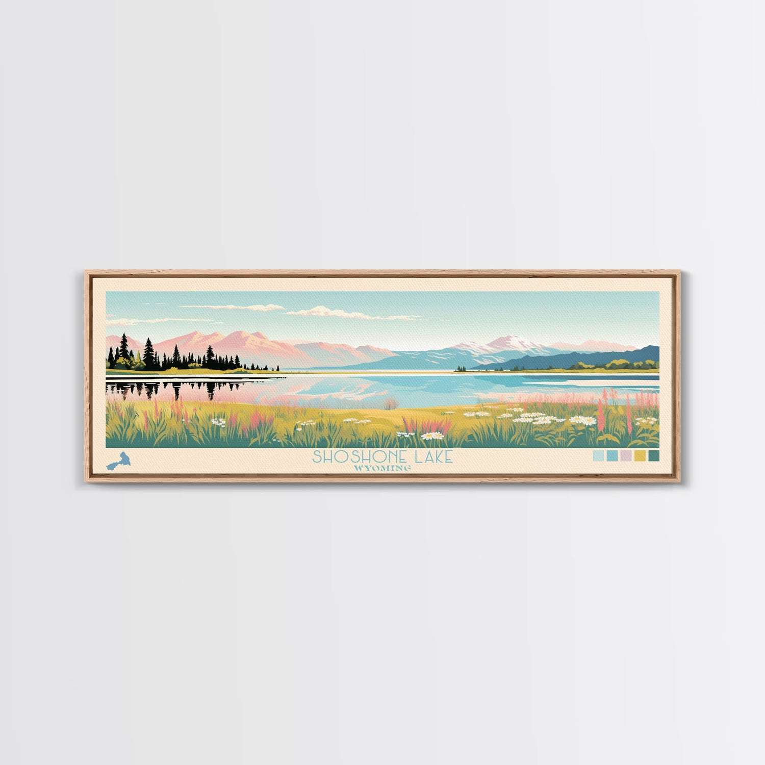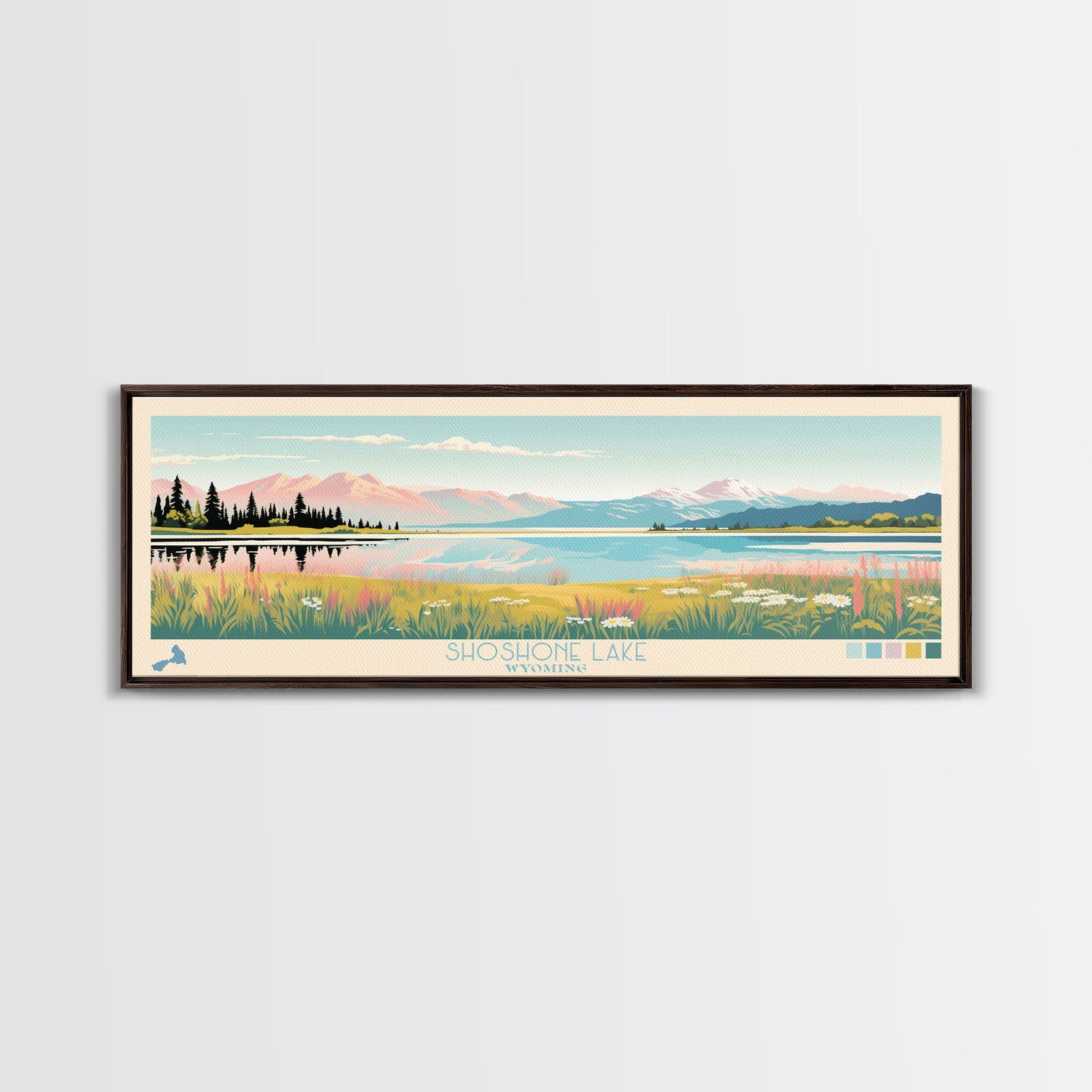 Shoshone Lake, Wyoming Framed Canvas Print, Panoramic Wall Art, Midcentury Modern Decor, Pop Art, Bedroom Decoration, Travel Poster