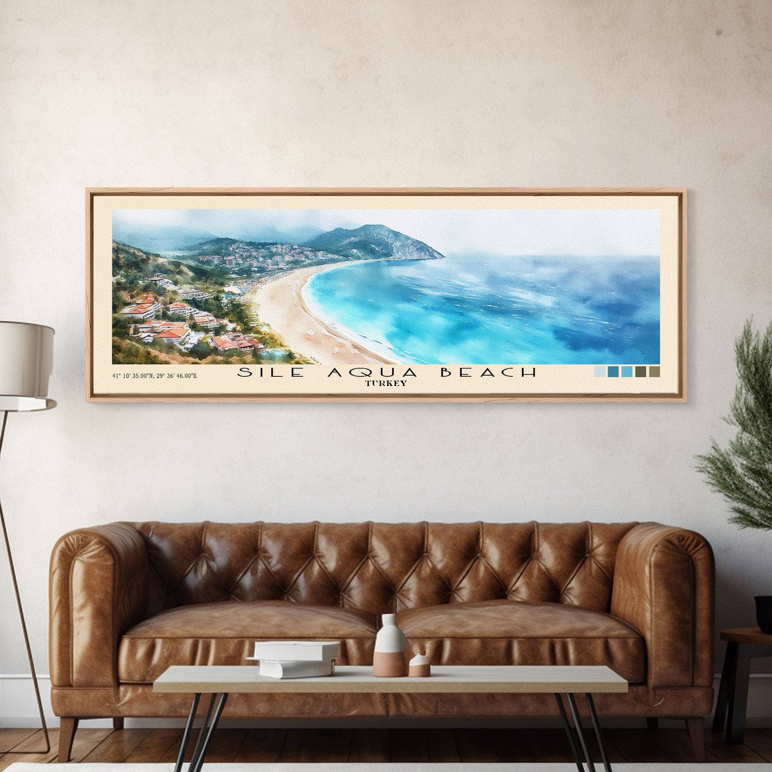 Sile Aqua Beach, Turkey Watercolor Beach Print, Vacation Gift, Turkey Wall Art, Beach Painting, Beach Decor, Beach Painting - 10x30 Inches / No Frame - Stretched Canvas Only is backordered and will ship as soon as it is back in stock.