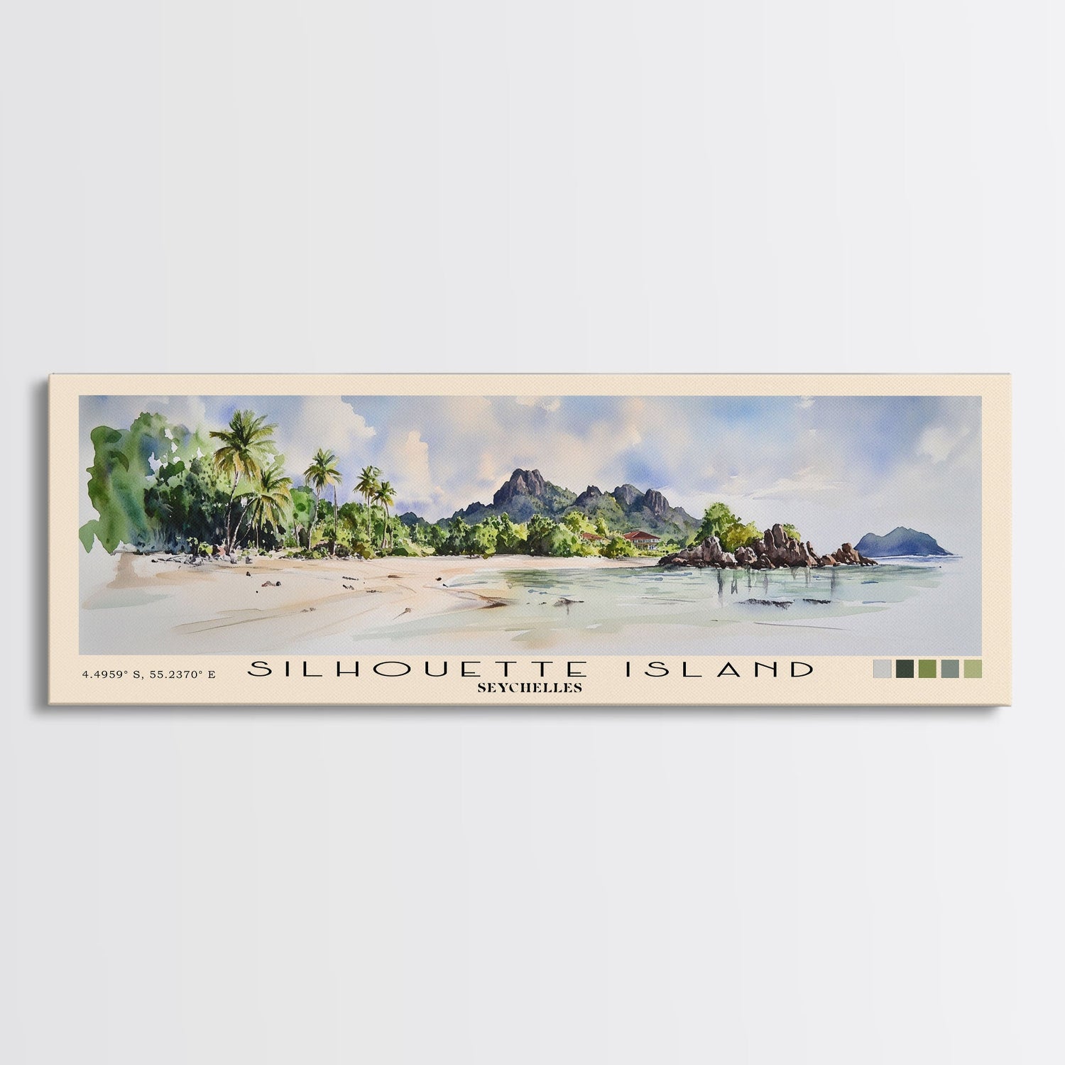 Silhouette Island, Seychelles Watercolor Print, Vacation Gift, Seychelles Wall Art, Beach Painting, Beach Decor, Large Wall Art, Wood Frame Art - 10x30 Inches / No Frame - Stretched Canvas Only is backordered and will ship as soon as it is back in stock.