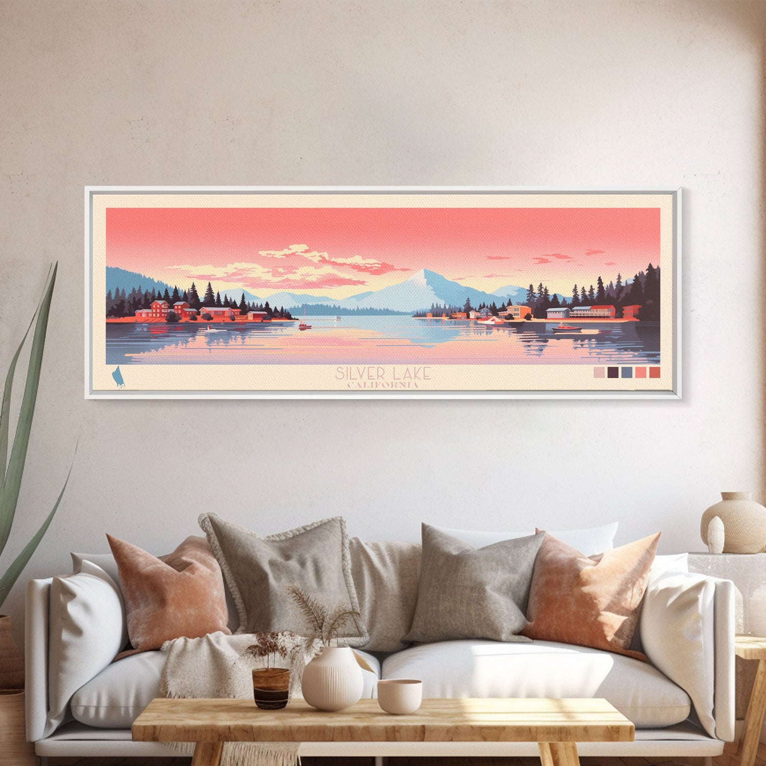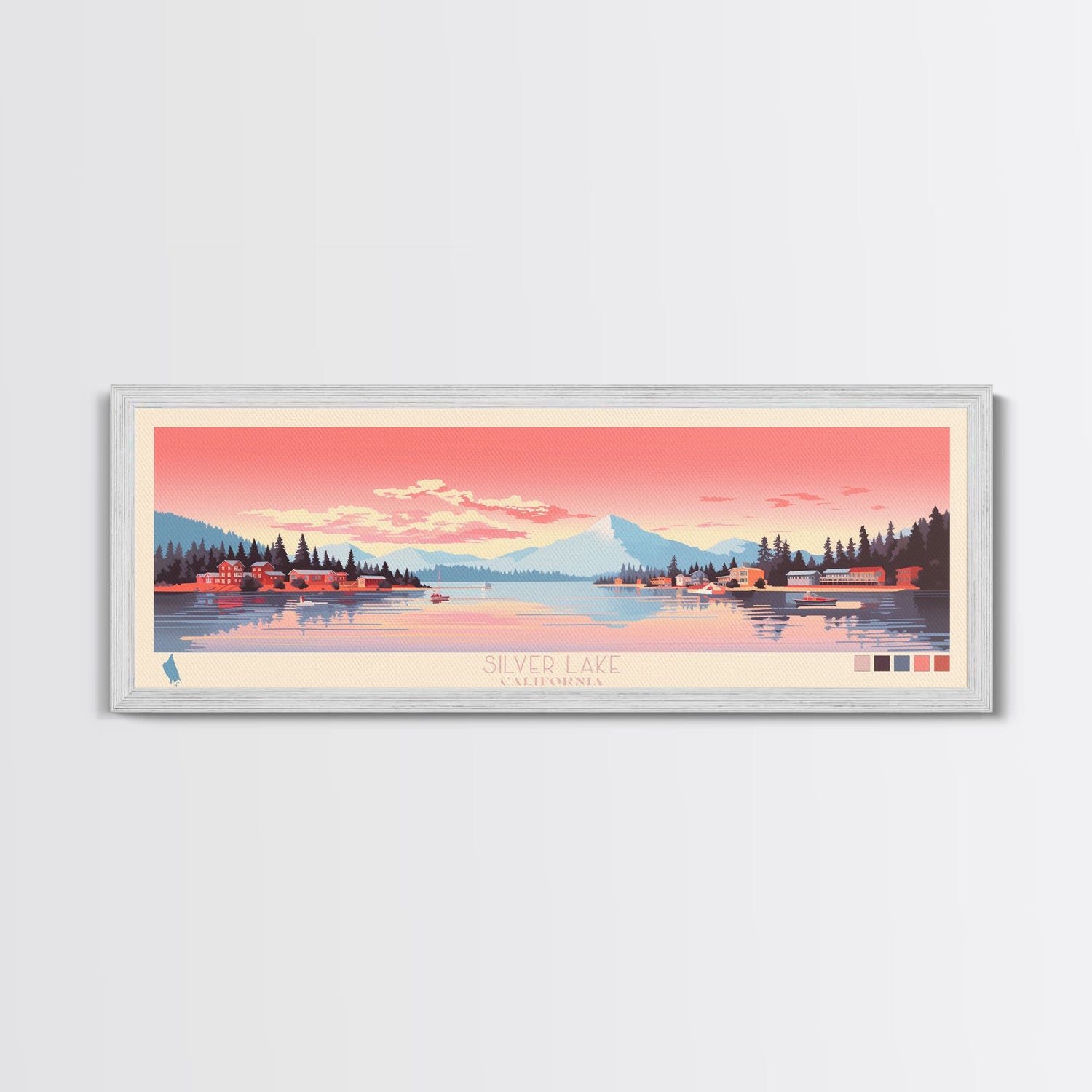 Silver Lake, California Framed Canvas Print, Panoramic Travel Poster, Midcentury Modern Art, Wall Art, Pop Art, Living Room Decoration