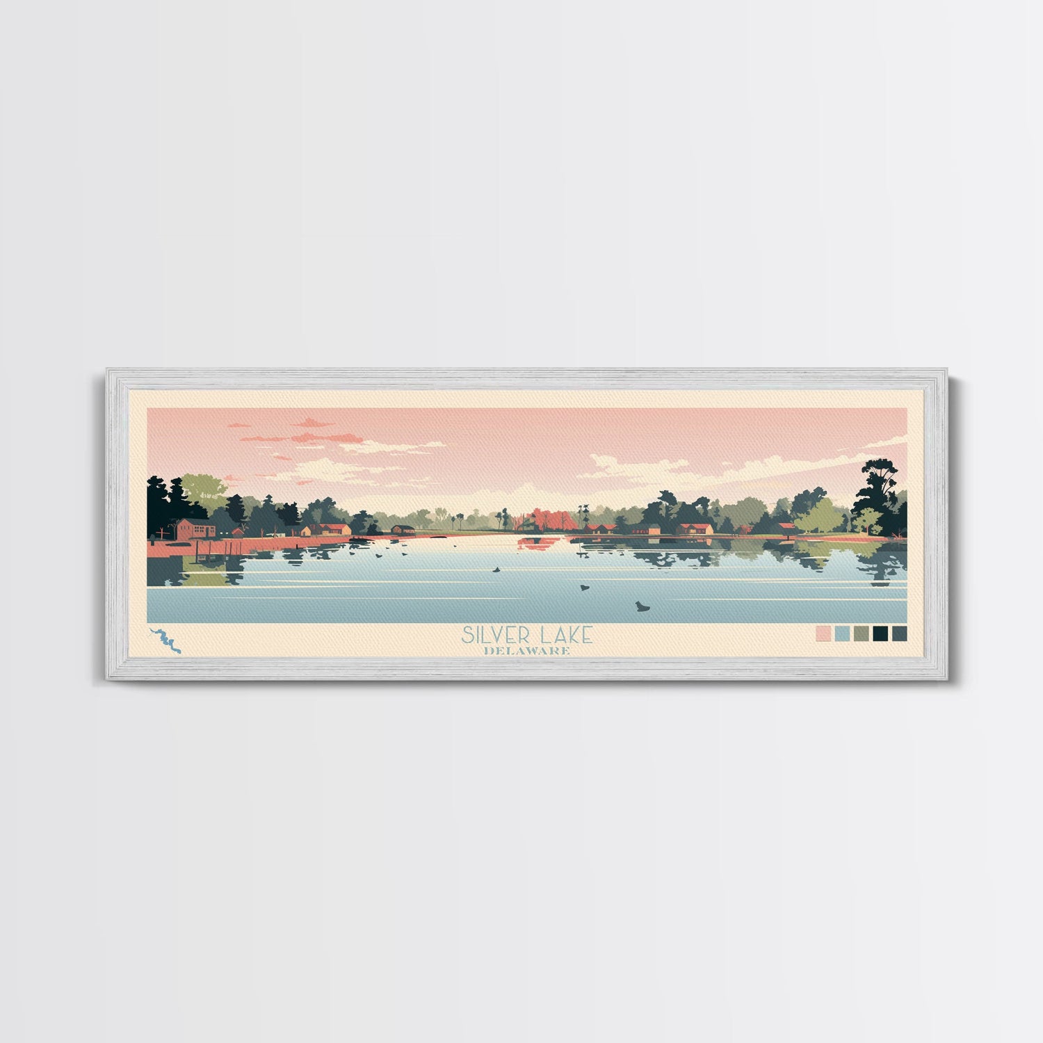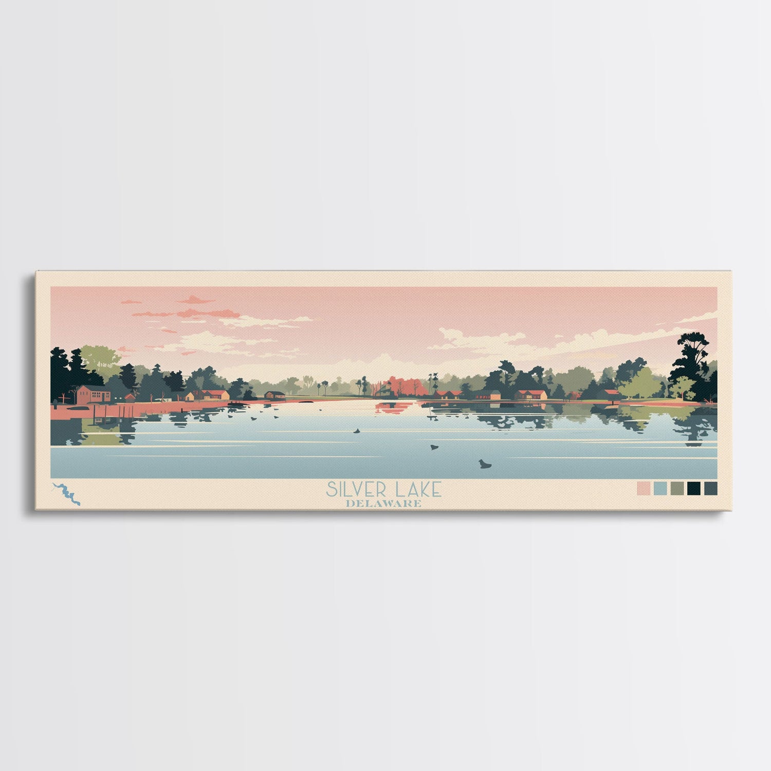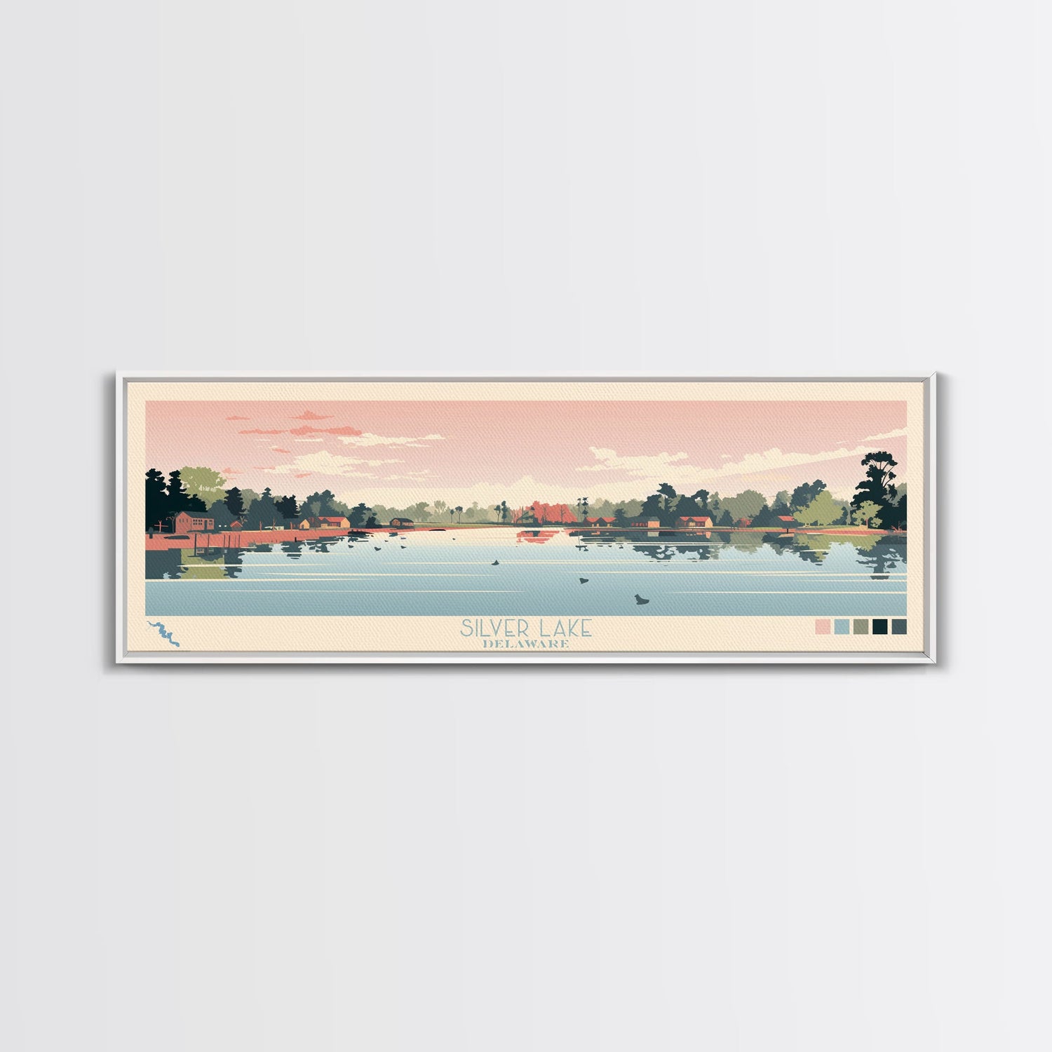 Silver Lake, Delaware Framed Canvas Print, Panoramic Wall Art, Midcentury Modern Decor, Pop Art, Travel Poster, Home Decoration - 10x30 Inches / No Frame - Stretched Canvas Only is backordered and will ship as soon as it is back in stock.