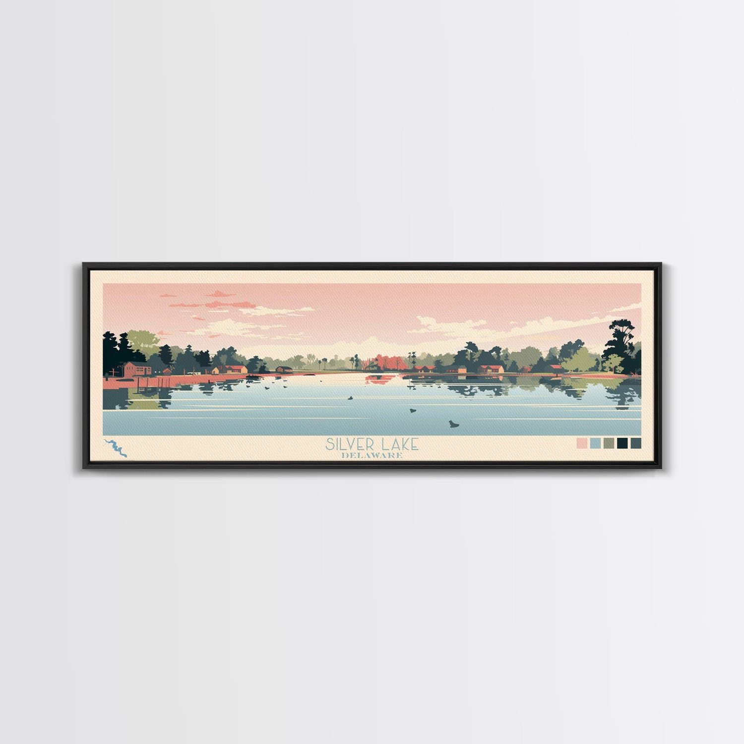 Silver Lake, Delaware Framed Canvas Print, Panoramic Wall Art, Midcentury Modern Decor, Pop Art, Travel Poster, Home Decoration