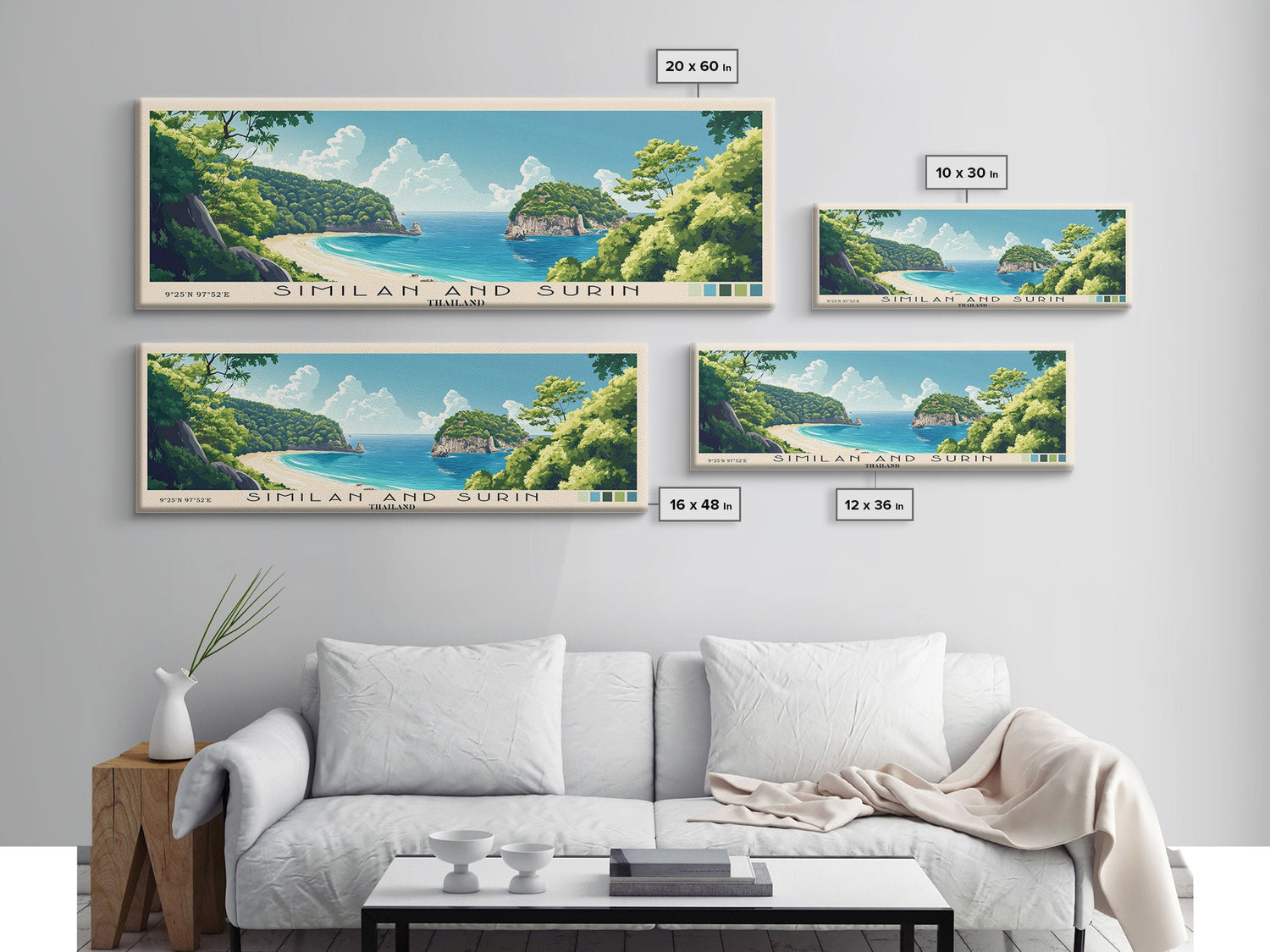 Similan and Surin, Thailand Panoramic Print, Vacation Gift, Thailand Wall Art, Vacation Wall Art, Vacatation Memories, Beach Decor, Beach Or Lakehouse Art - 10x30 Inches / No Frame - Stretched Canvas Only is backordered and will ship as soon as it is back in stock.