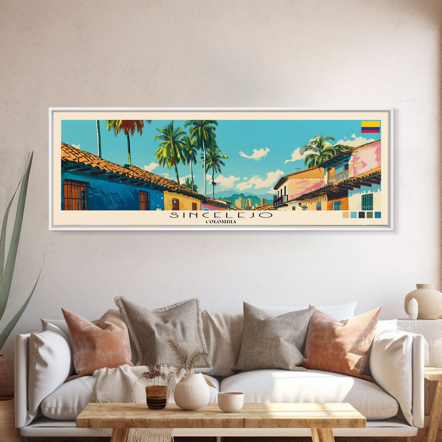 Sincelejo, Colombia Panoramic Canvas Print, Sincelejo, Colombia Painting, Colombia Art, Sincelejo Travel Poster, Travel Art, Living Room Painting