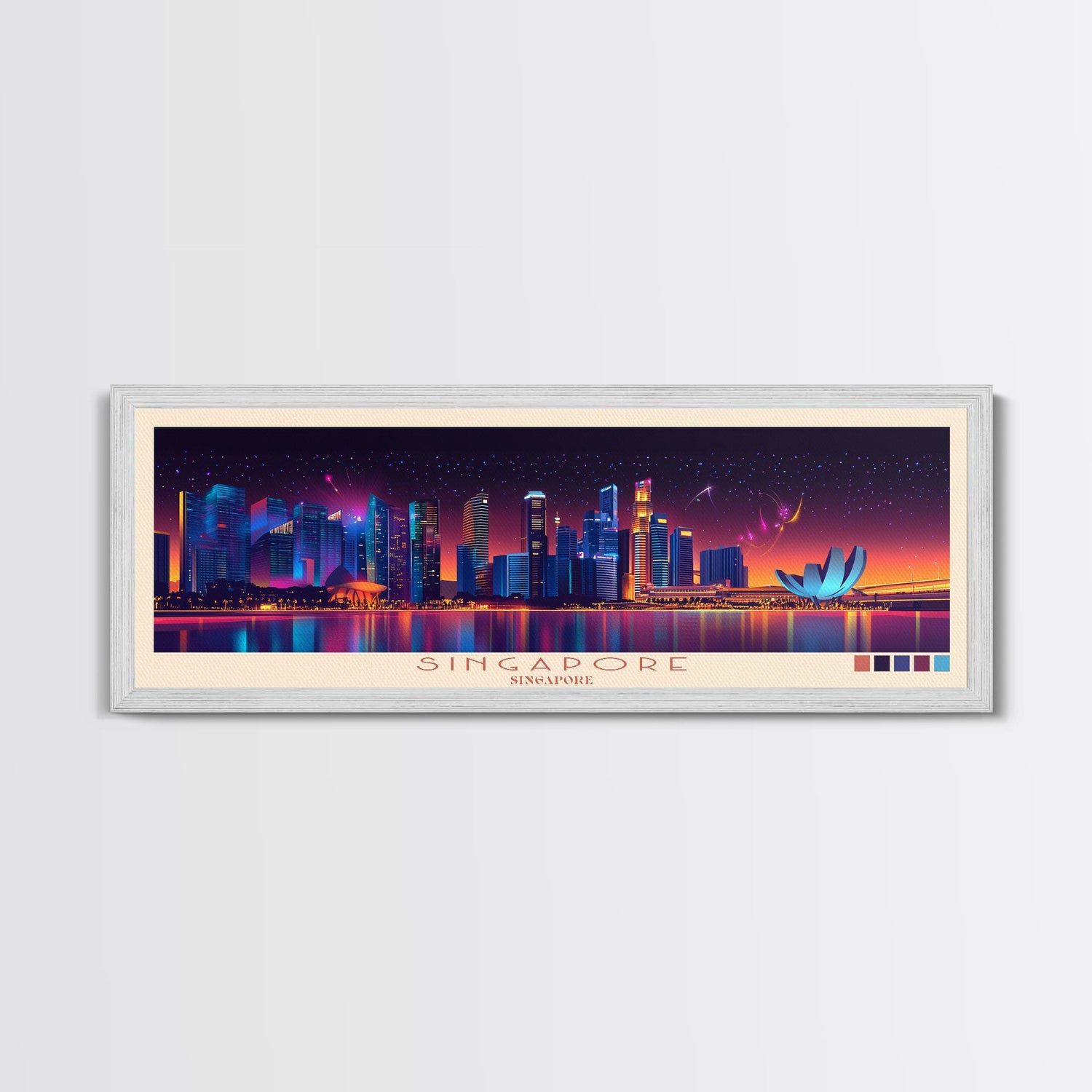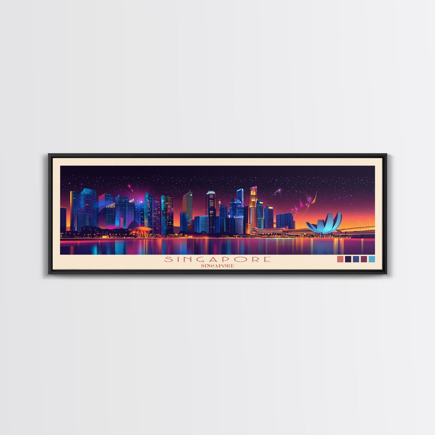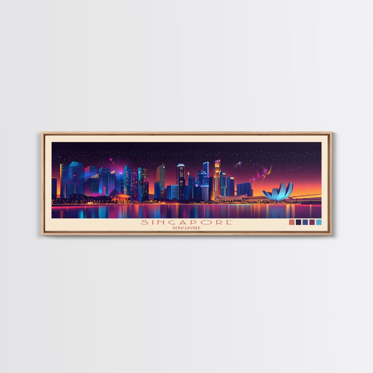 Singapore, Singapore Travel Poster Panoramic Canvas Print, Singapore, Singapore Painting, Singapore Art, Singapore Travel Art, Guest Room Painting