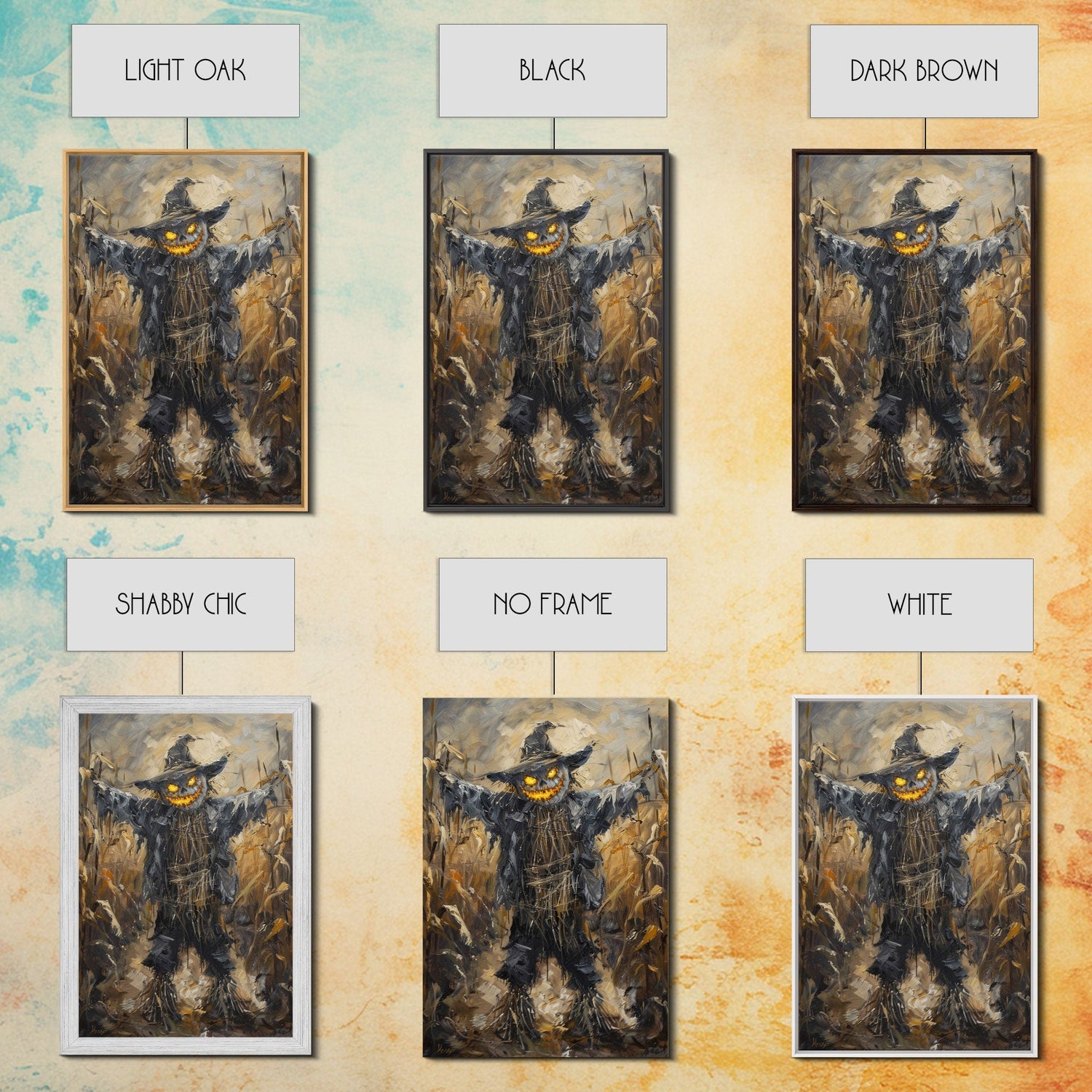 Sinister Scarecrow in Cornfield Framed Canvas Print | Halloween Horror Art | Spooky Farm Art | Creepy Scarecrow Art for Home Decoration - 8x12 Inches / No Frame - Stretched Canvas Only is backordered and will ship as soon as it is back in stock.