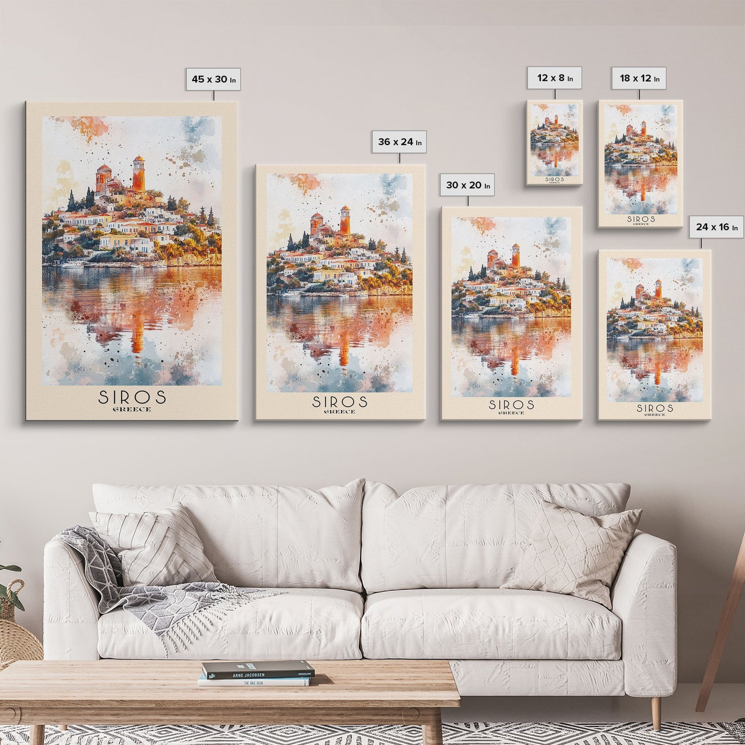 Siros, Greece Watercolor Print, Vacation Gift, Greece Wall Art, Beach Painting, Beach Decor, Large Wall Art, Wood Frame Art - 8x12 Inches / No Frame - Stretched Canvas Only is backordered and will ship as soon as it is back in stock.