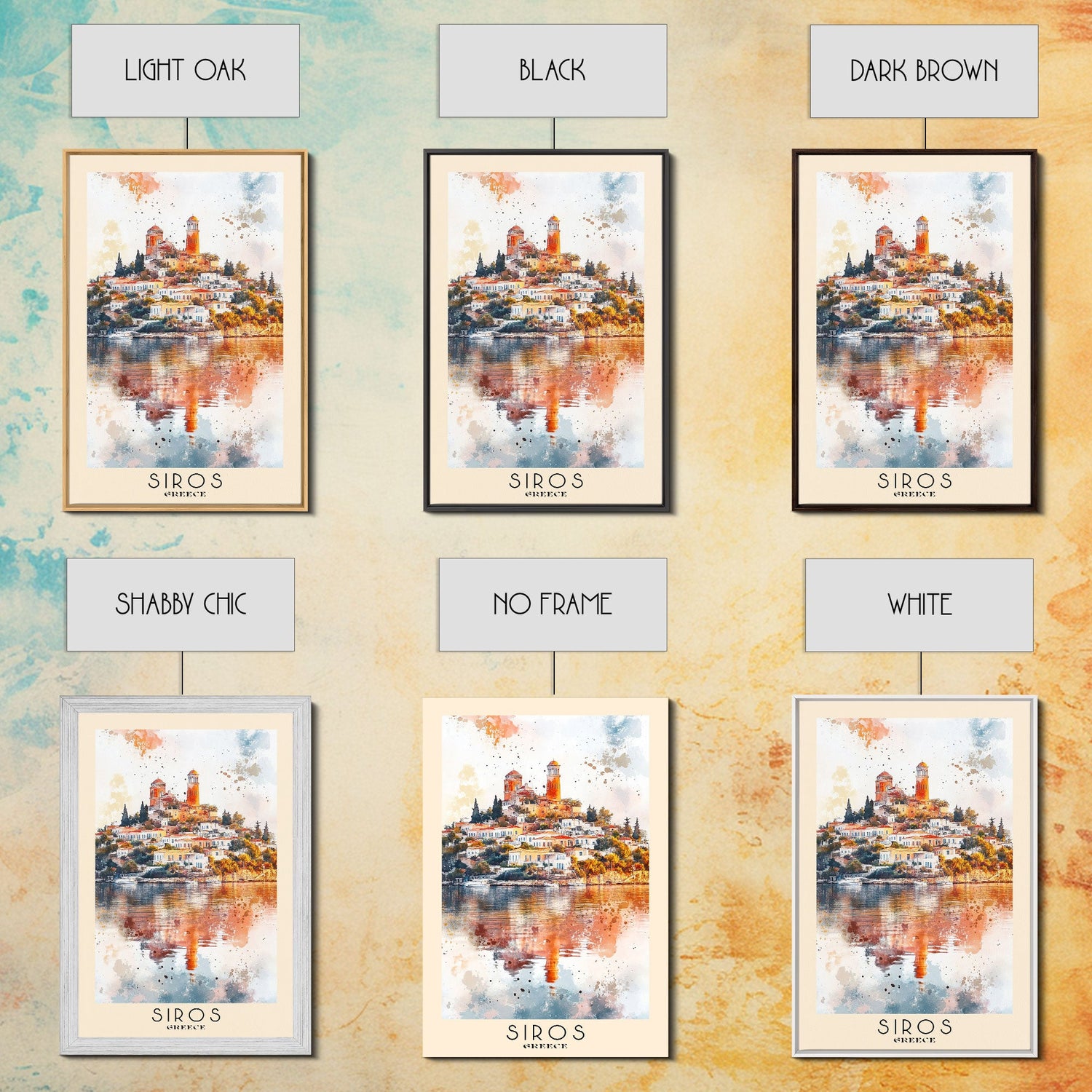 Siros, Greece Watercolor Print, Vacation Gift, Greece Wall Art, Beach Painting, Beach Decor, Large Wall Art, Wood Frame Art