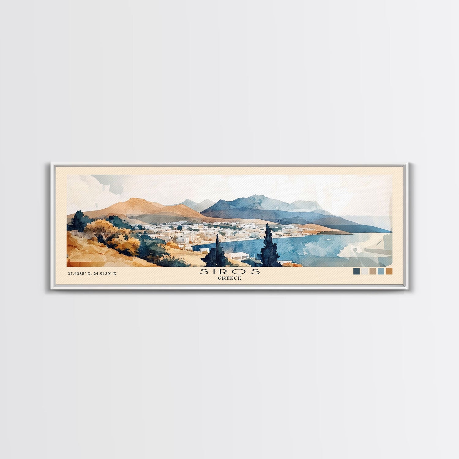 Siros, Greece Watercolor Print, Vacation Gift, Greece Wall Art, Beach Painting, Beach Decor, Large Wall Art, Wood Frame Art - 10x30 Inches / No Frame - Stretched Canvas Only is backordered and will ship as soon as it is back in stock.