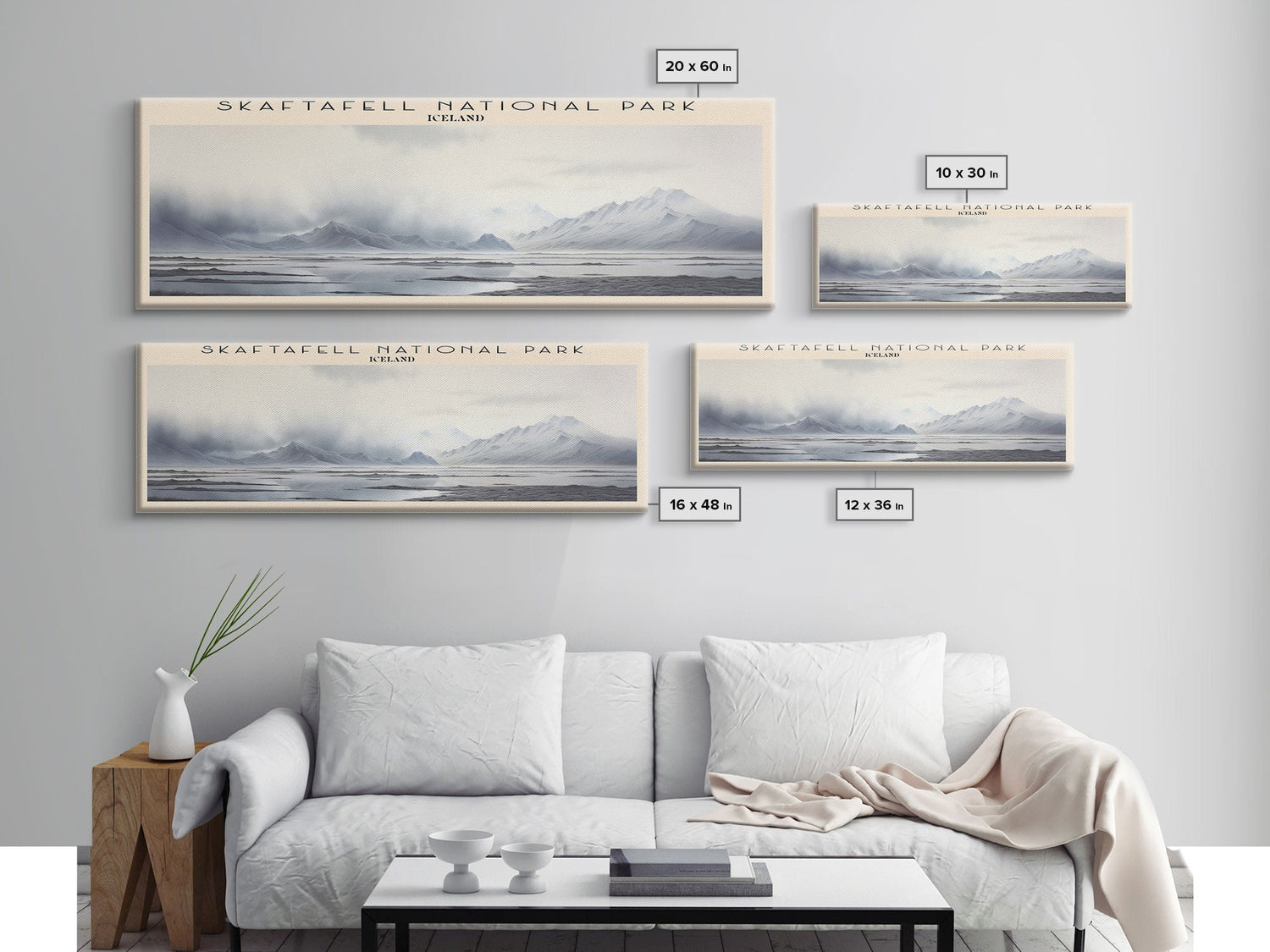 Skaftafell National Park Travel Poster Print, Framed Canvas Print, COUNTRY Travel Art, Wood Framed Art, Wall Hanging, Home Decor - 10x30 Inches / No Frame - Stretched Canvas Only is backordered and will ship as soon as it is back in stock.