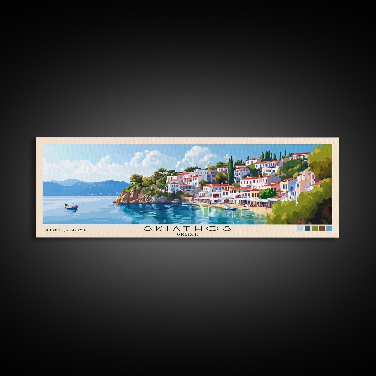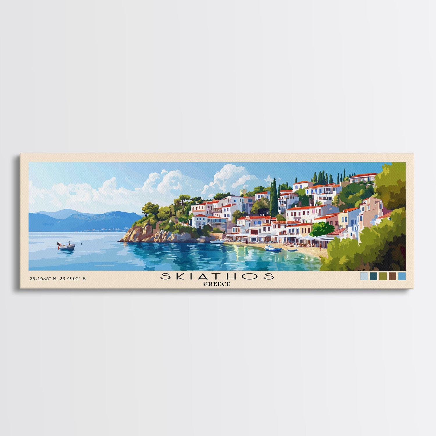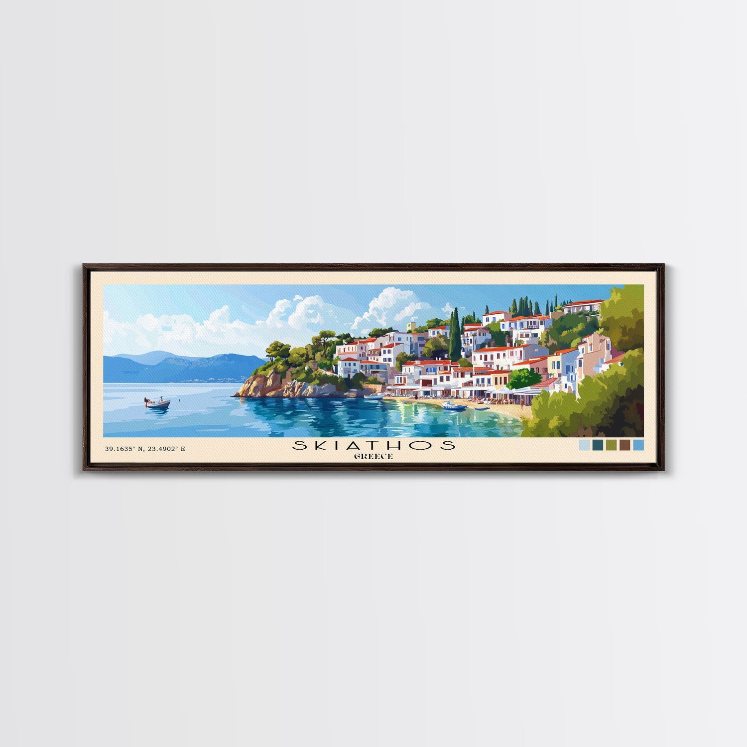 Skiathos, Greece Panoramic Beach Print, Vacation Gift, Greece Wall Art, Framed Canvas Print, Framed Beach Painting