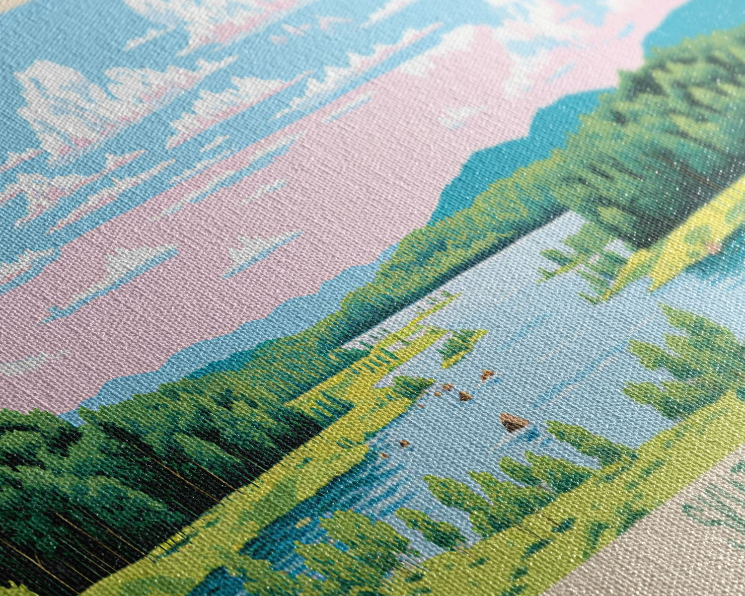 Skiatook Lake, Oklahoma Framed Canvas Print, Lake House Decor, Midcentury Modern Art, Pop Art, Travel Poster, Bedroom Wall Art - 10x30 Inches / No Frame - Stretched Canvas Only is backordered and will ship as soon as it is back in stock.