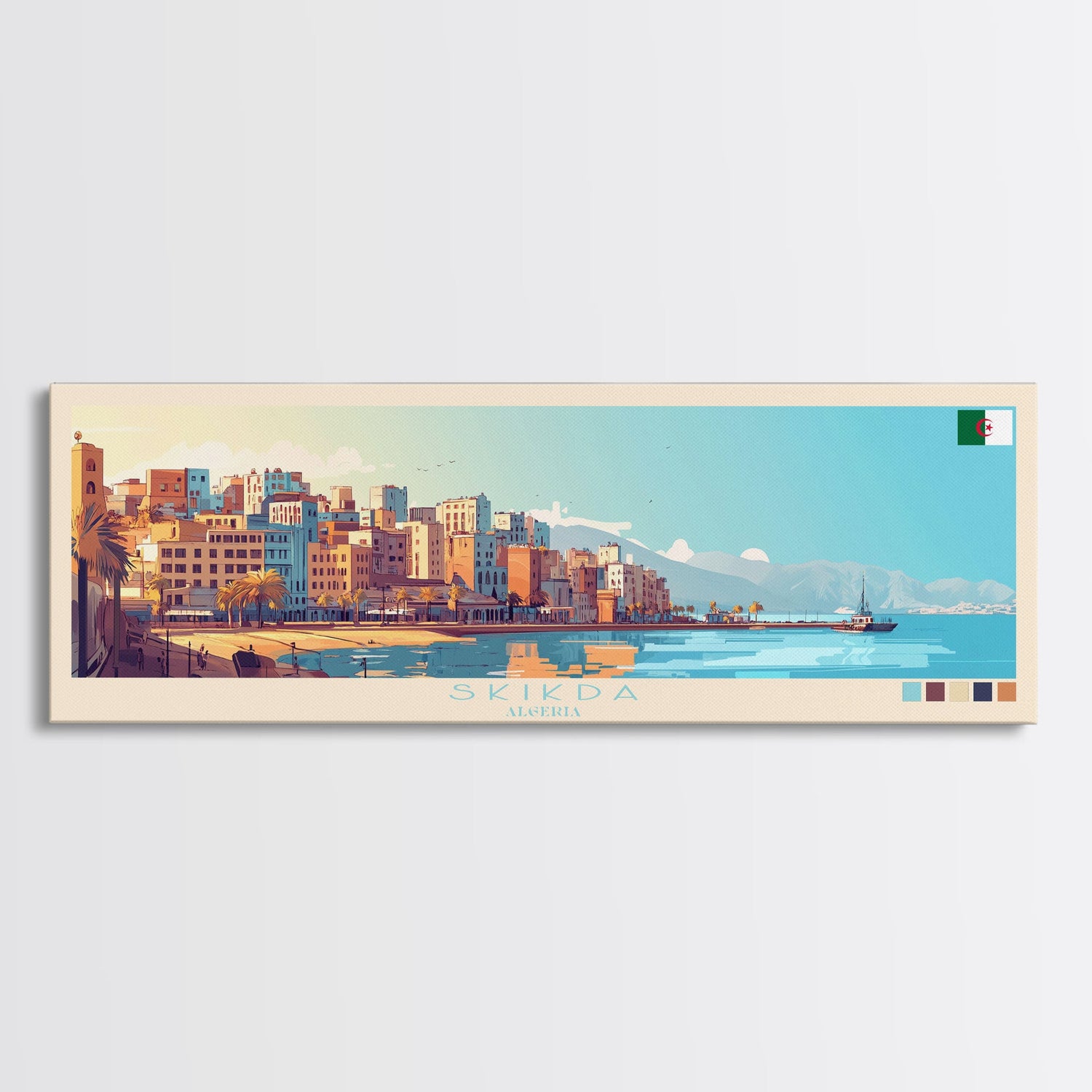 Skikda, Algeria Panoramic Travel Poster Canvas Print, Skikda, Algeria Painting, Algeria Art, Skikda Panoramic Travel Art, Travel Painting