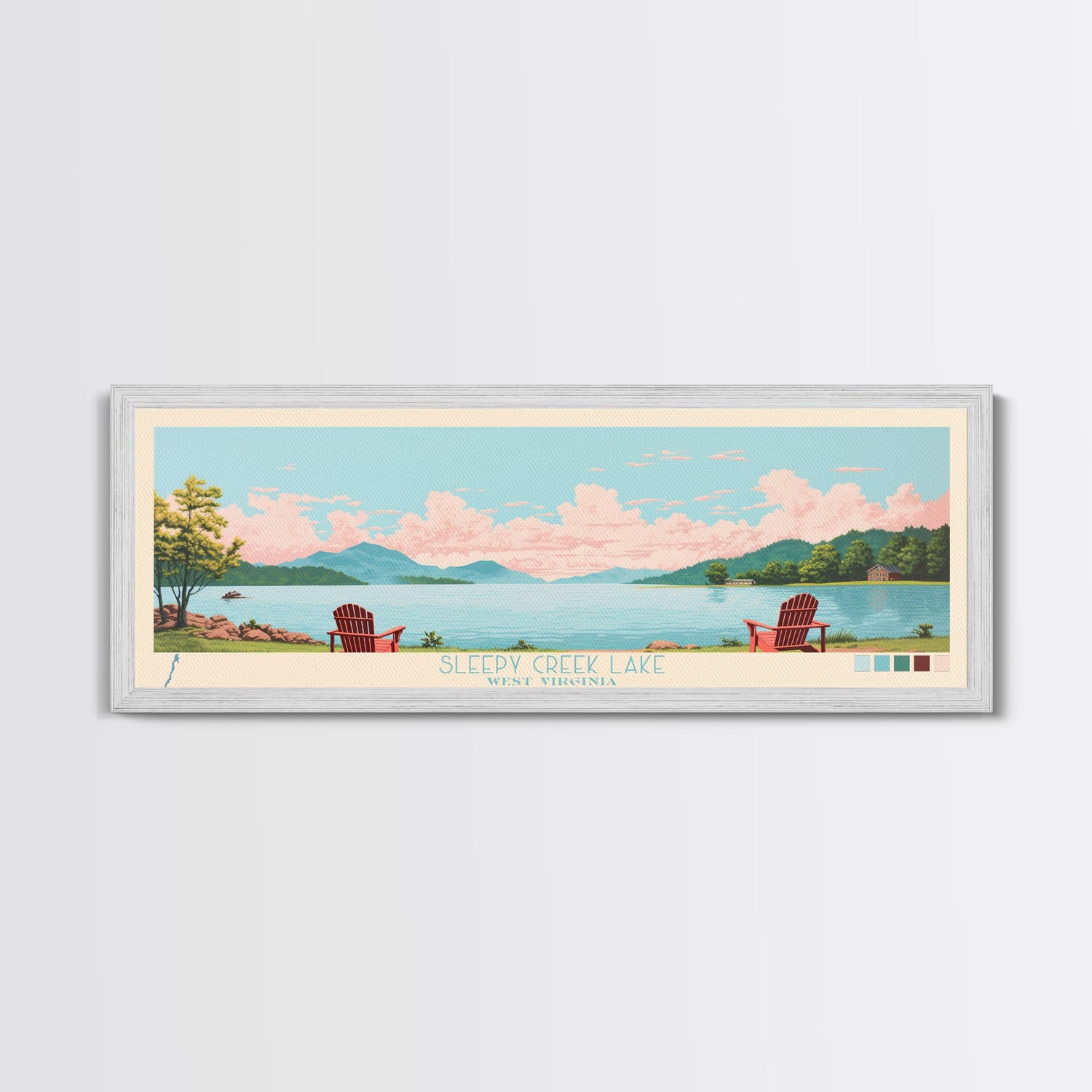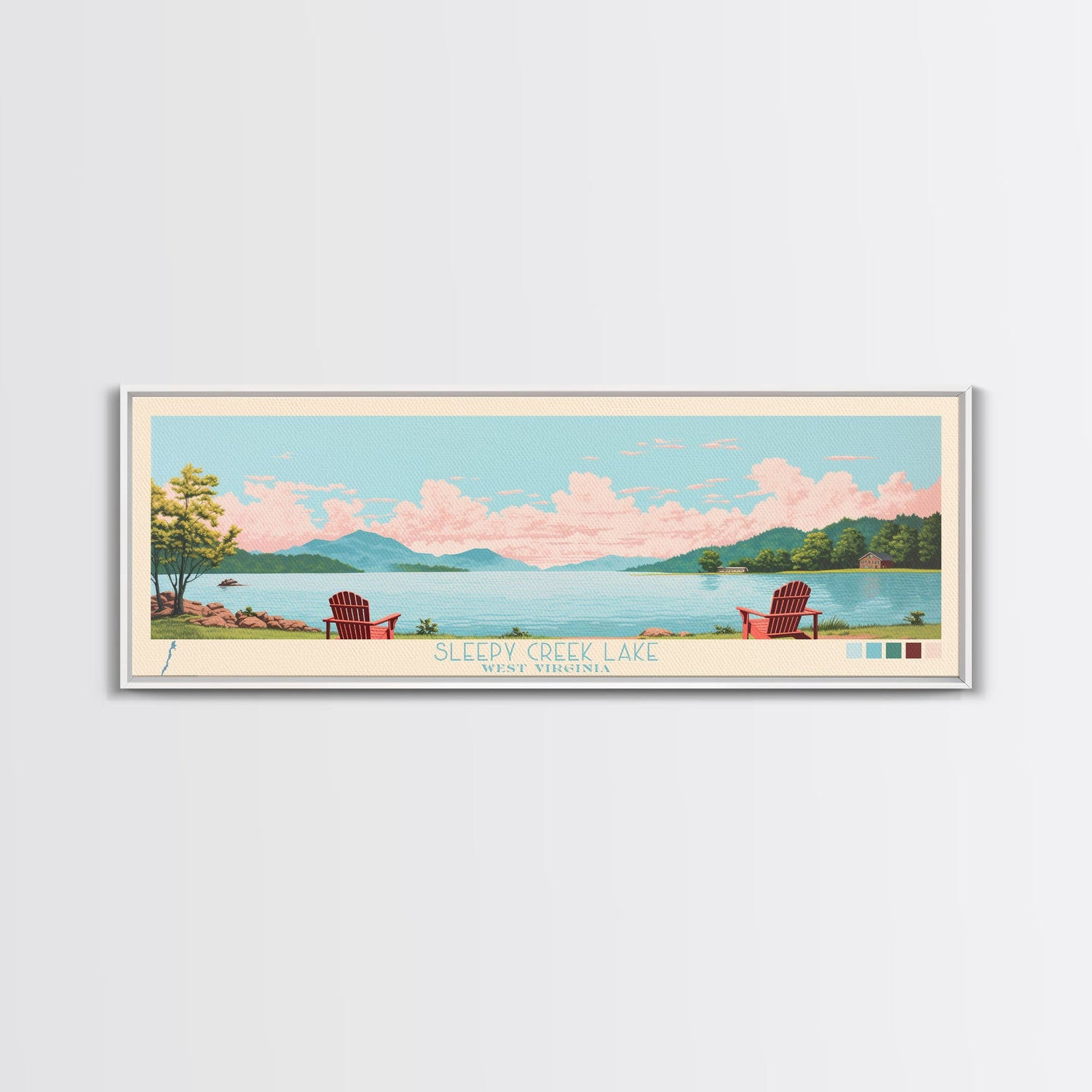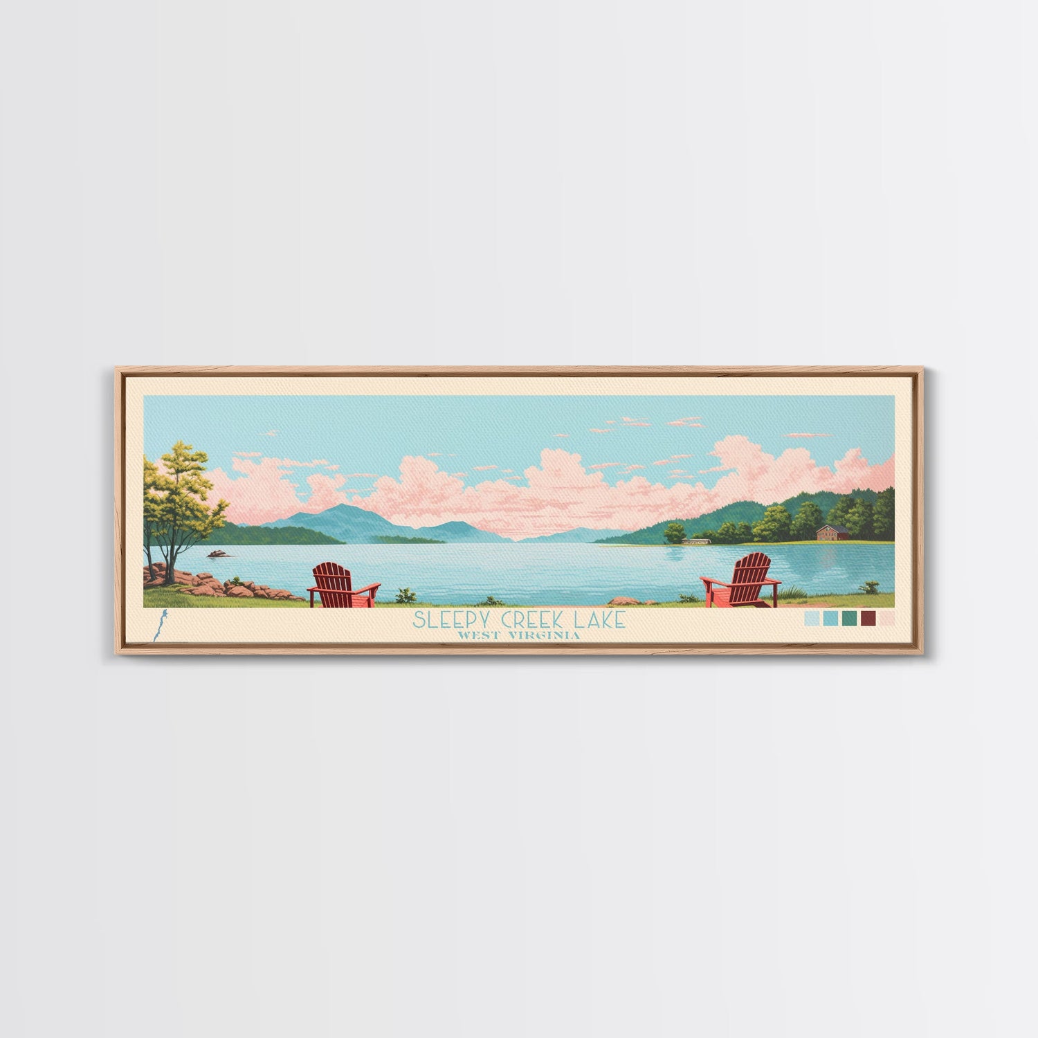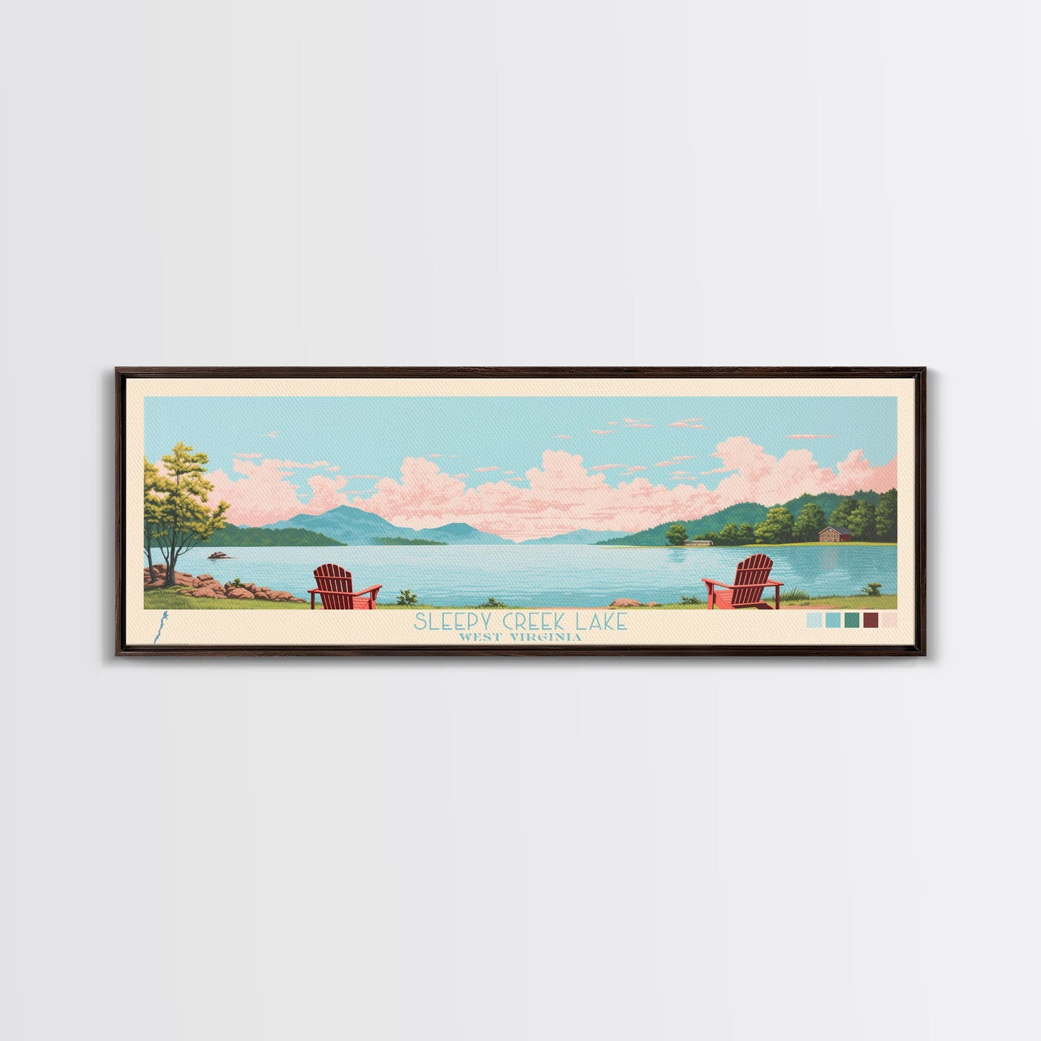 Sleepy Creek Lake, West Virginia Framed Canvas Print, Lake House Decor, Midcentury Modern Art, Pop Art, Travel Poster, Bedroom Wall Art - 10x30 Inches / No Frame - Stretched Canvas Only is backordered and will ship as soon as it is back in stock.