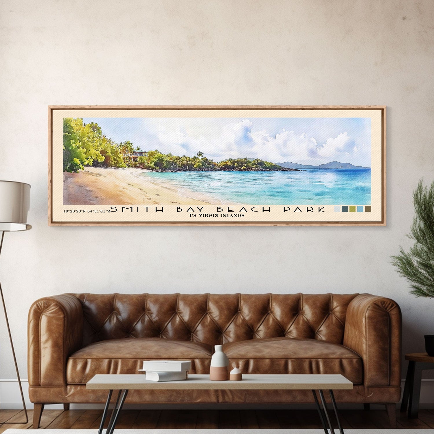 Smith Bay Beach Park, US Virgin islands Watercolor Beach Print, Vacation Gift, US Virgin islands Wall Art, Beach Painting, Beach Decor, Beach Painting - 10x30 Inches / No Frame - Stretched Canvas Only is backordered and will ship as soon as it is back in stock.