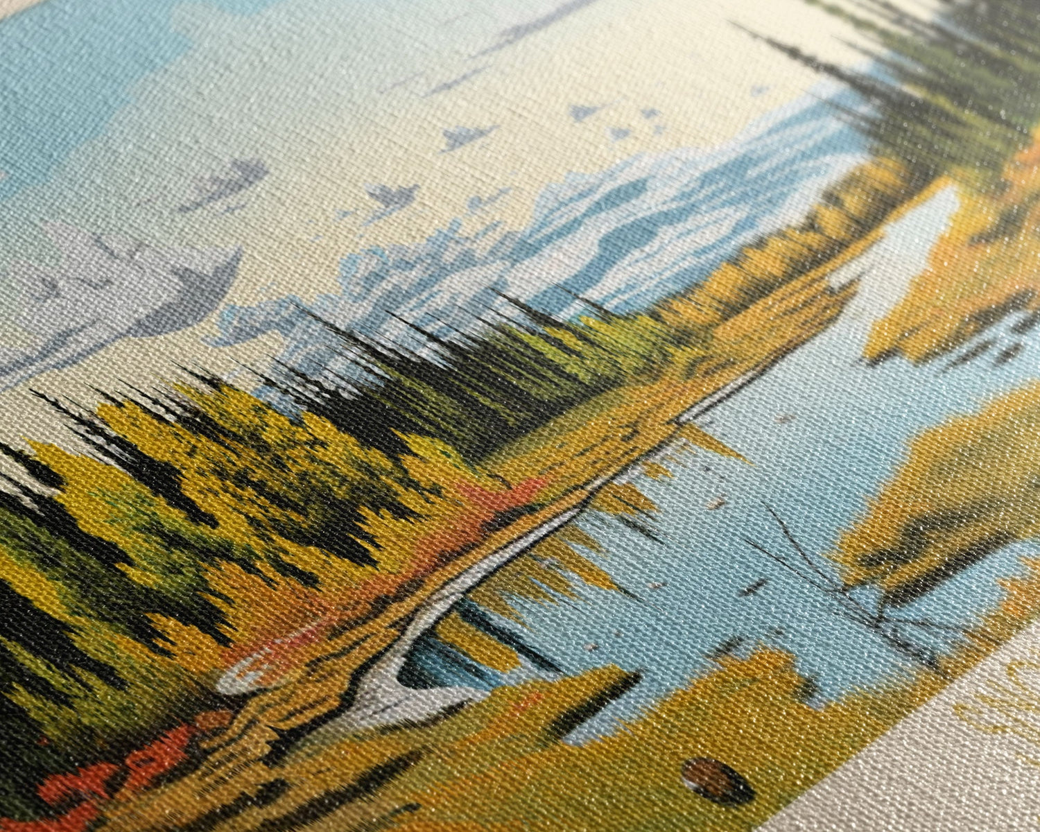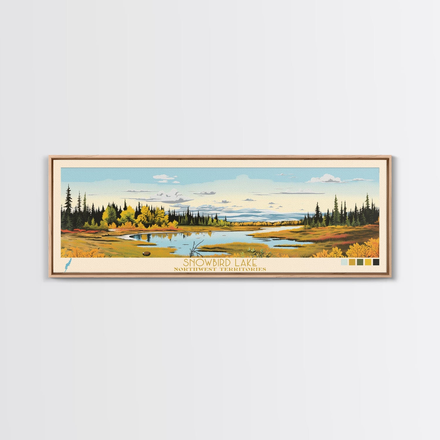 Snowbird Lake, Northwest Framed Canvas Print, Lake House Decor, Midcentury Modern Art, Pop Art, Travel Poster, Bedroom Wall Art
