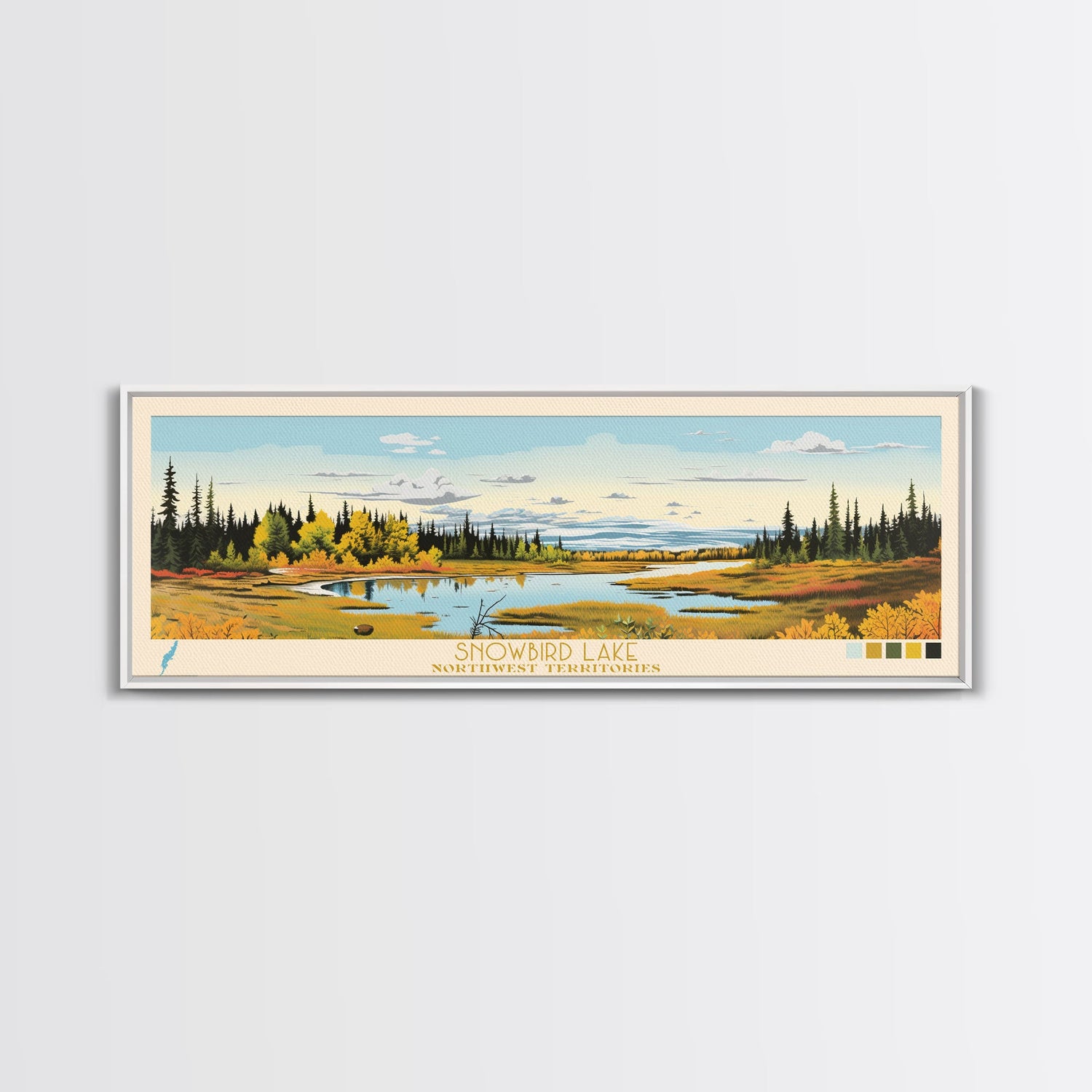 Snowbird Lake, Northwest Framed Canvas Print, Lake House Decor, Midcentury Modern Art, Pop Art, Travel Poster, Bedroom Wall Art - 10x30 Inches / No Frame - Stretched Canvas Only is backordered and will ship as soon as it is back in stock.