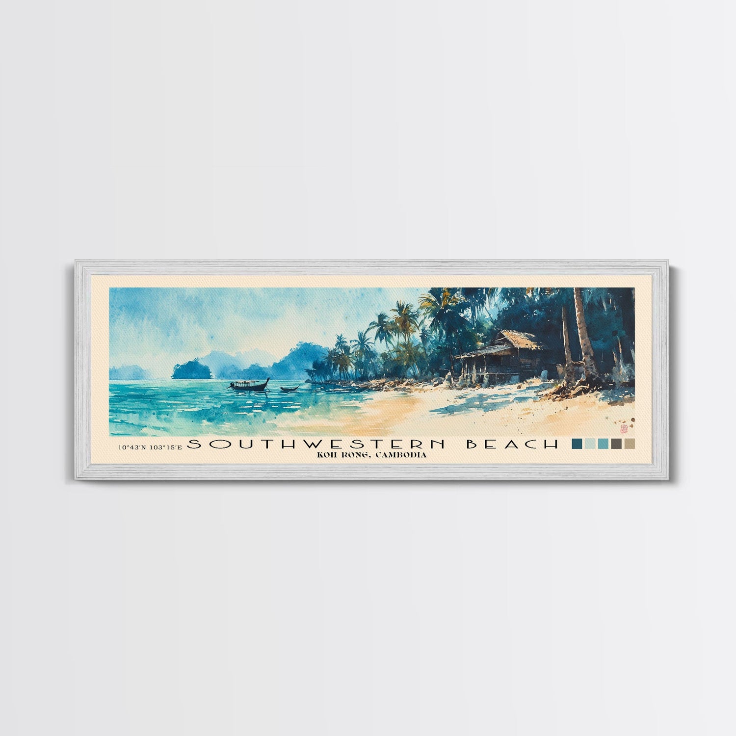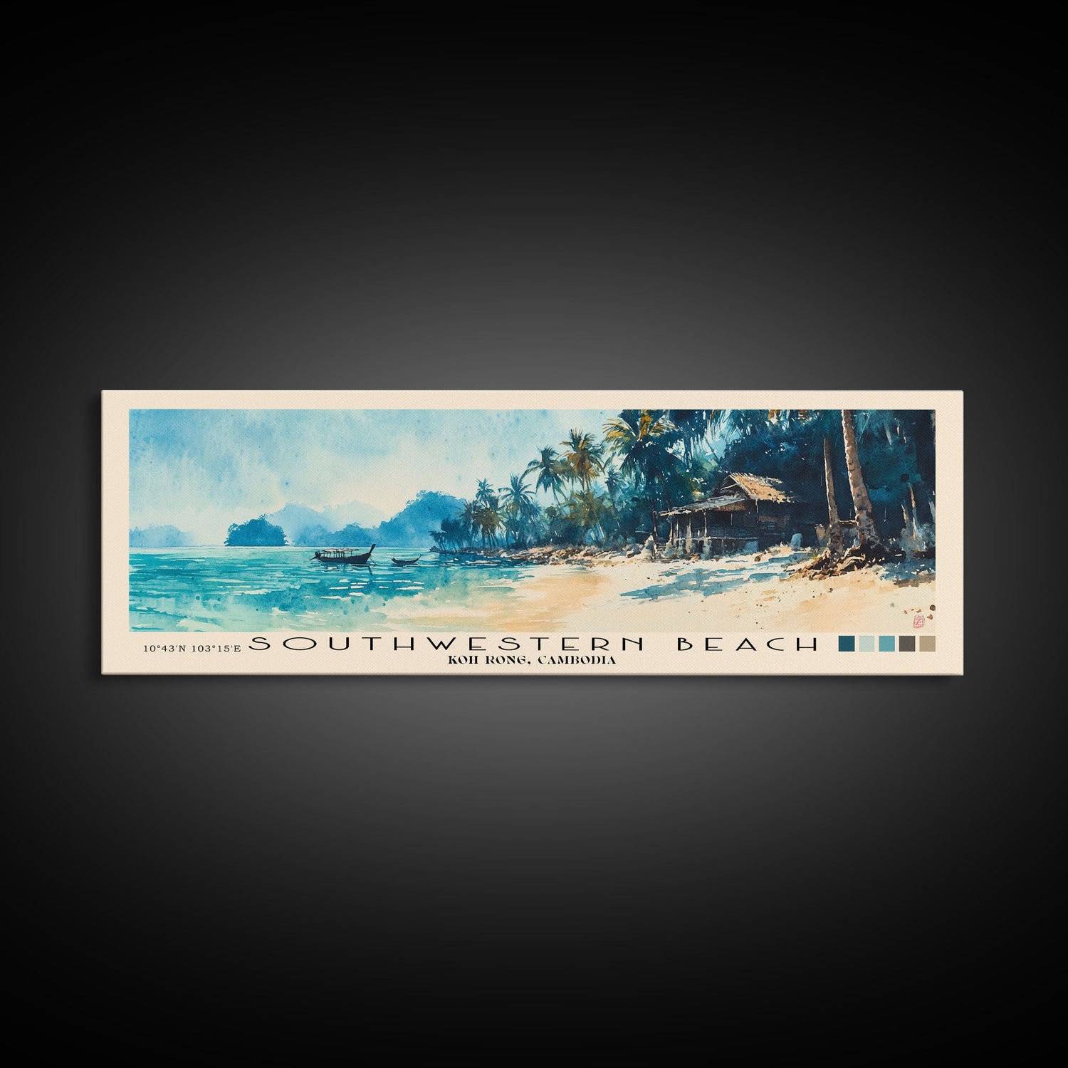 Southwestern Beach, Koh Rong, Cambodia Watercolor Beach Print, Vacation Gift, Koh Rong, Cambodia Wall Art, Beach Painting, Beach Decor, Beach Painting - 10x30 Inches / No Frame - Stretched Canvas Only is backordered and will ship as soon as it is back in stock.